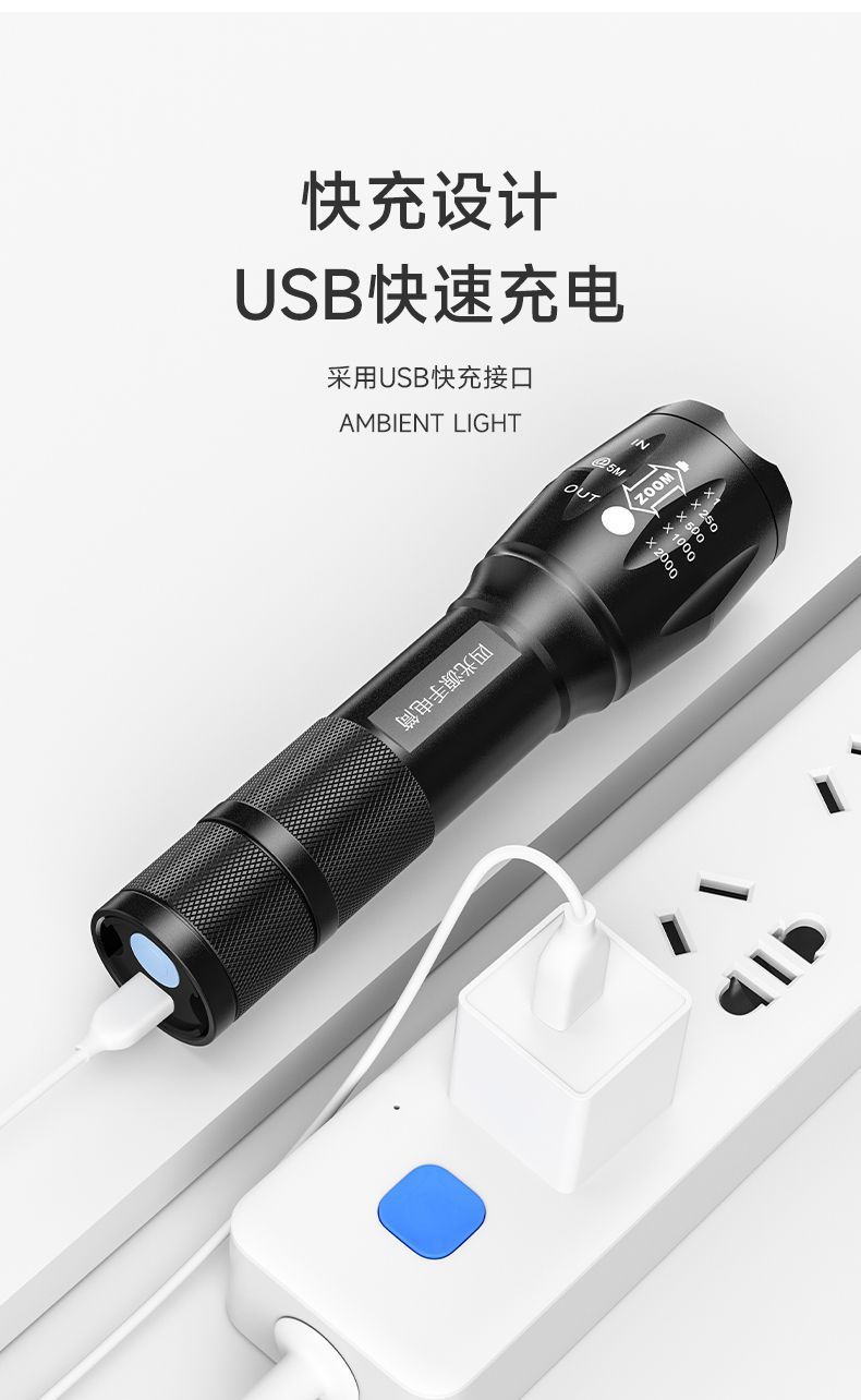 이중 광원(흰색#보라색) 줌 가능 - 직접 충전 가능