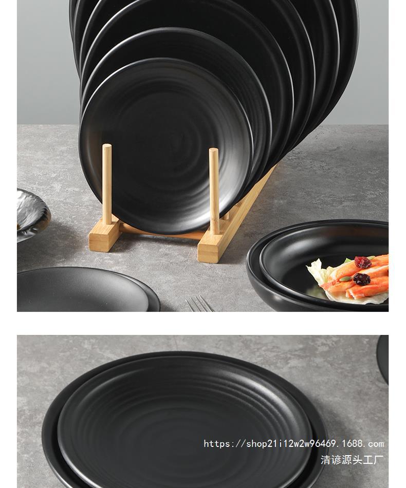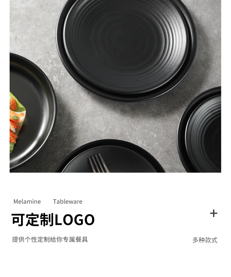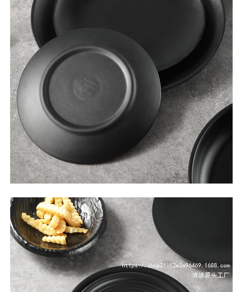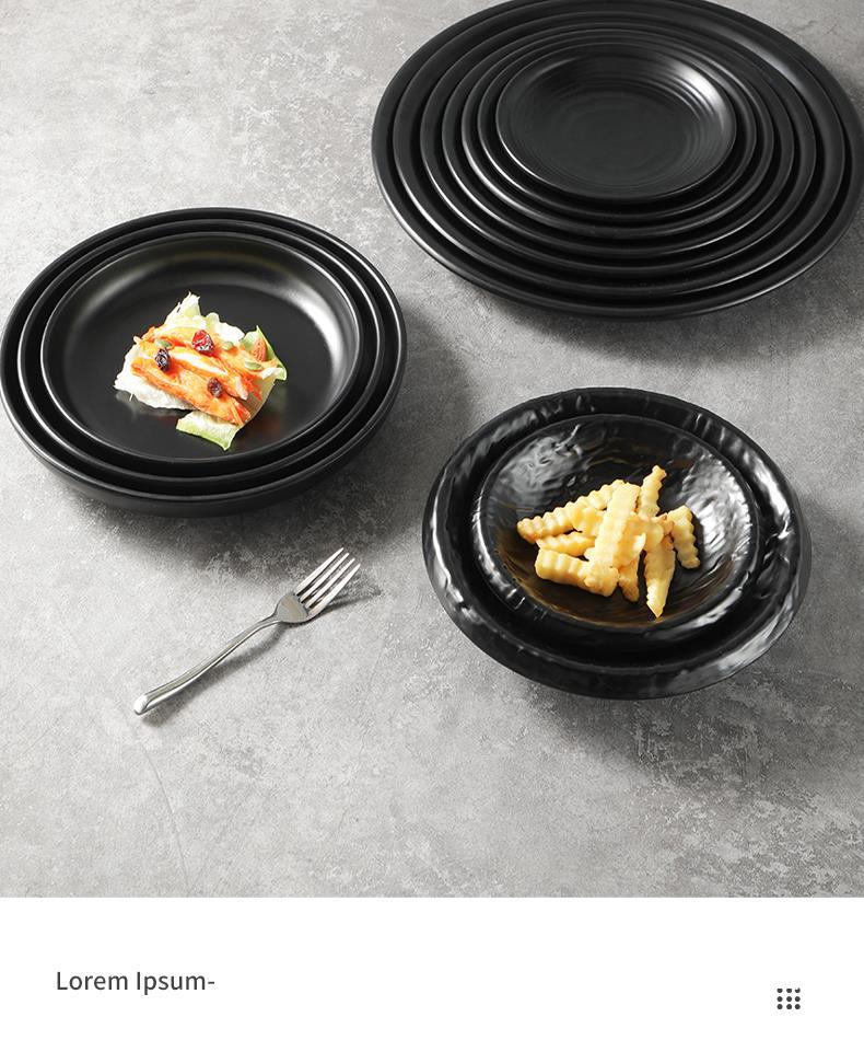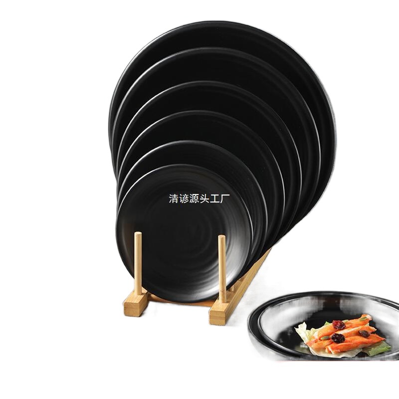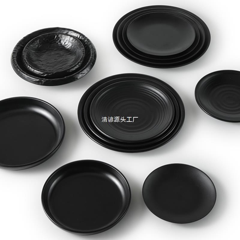 멜라민 식기 검은 플라스틱 플레이트 모방 도자기 둥근 접시 스테이크 플레이트 서양 접시 파스타 플레이트 상업 뼈 플레이트