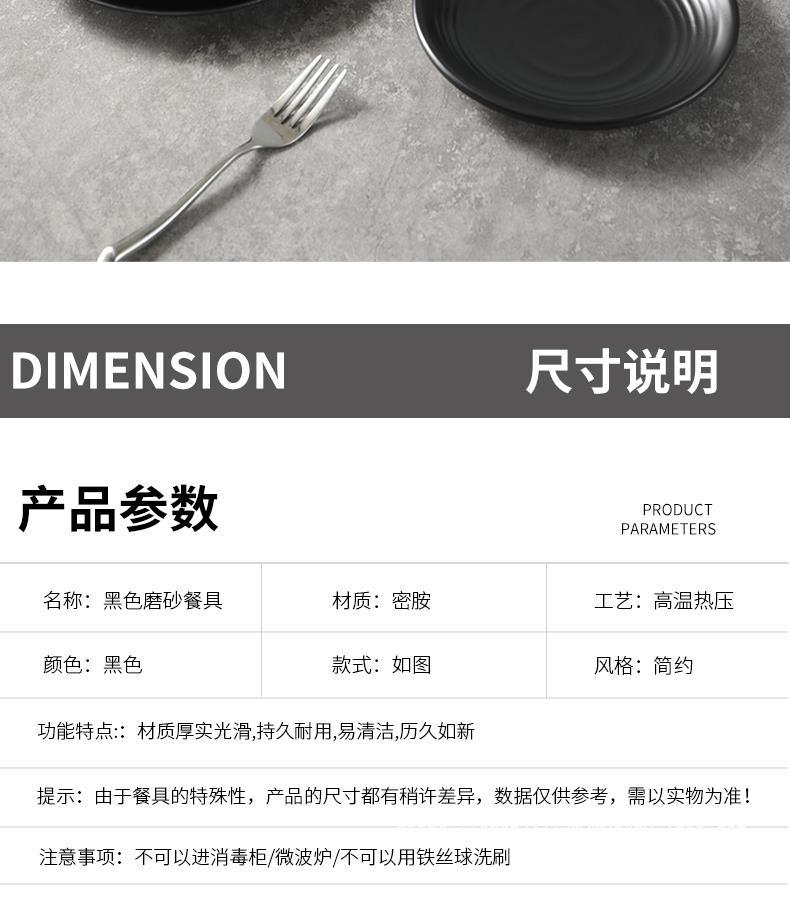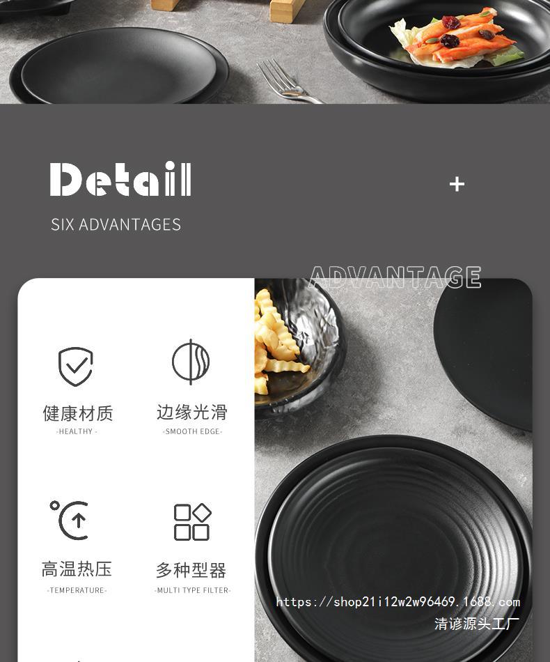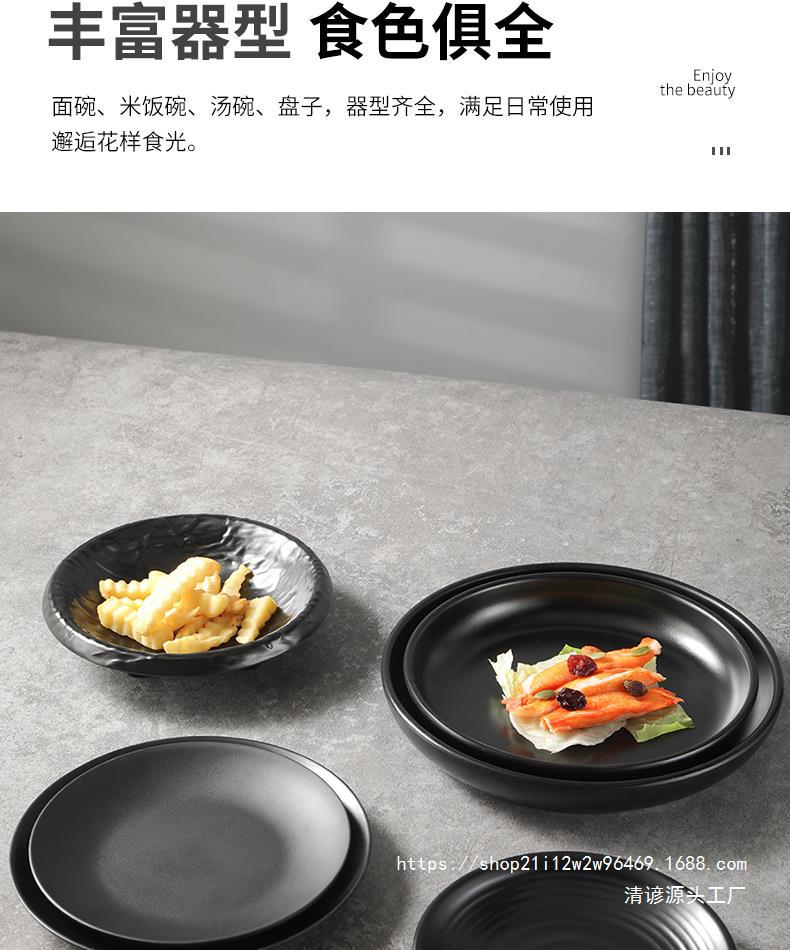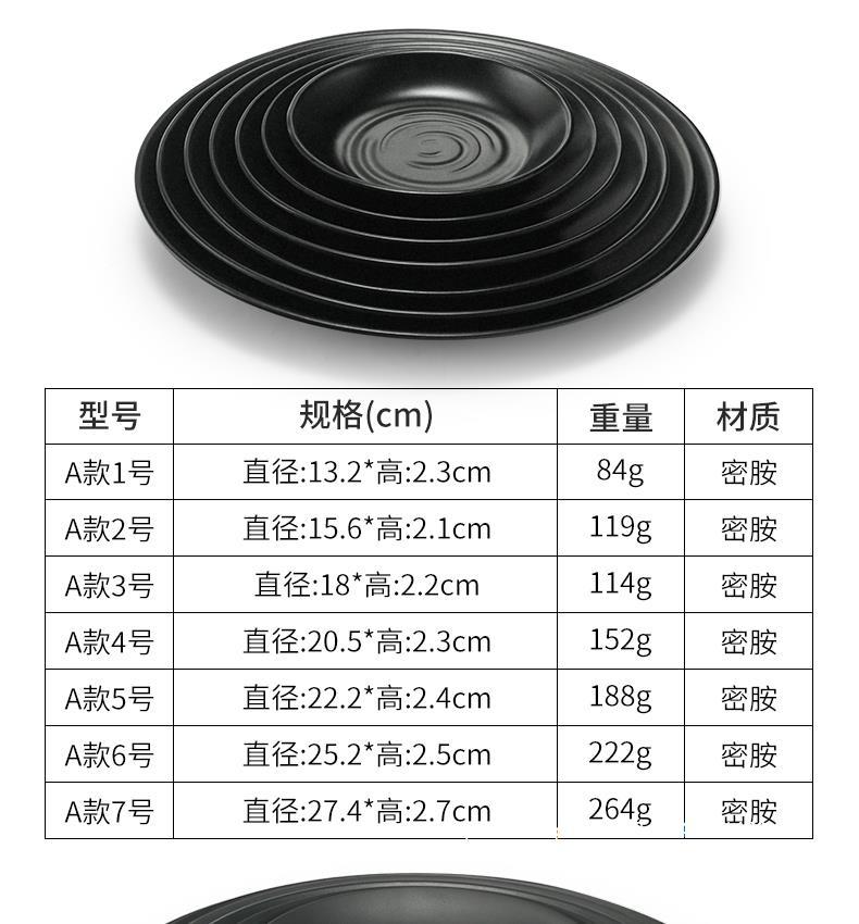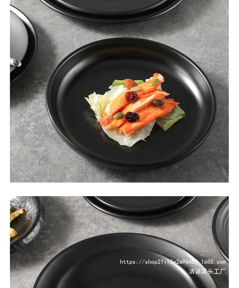 멜라민 식기 검은 플라스틱 플레이트 모방 도자기 둥근 접시 스테이크 플레이트 서양 접시 파스타 플레이트 상업 뼈 플레이트