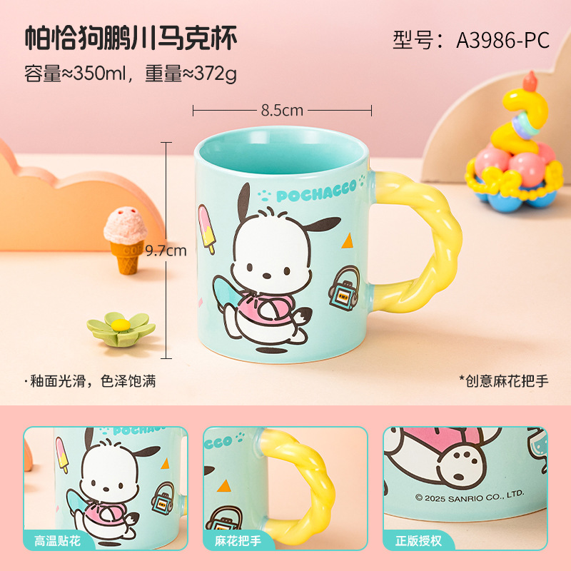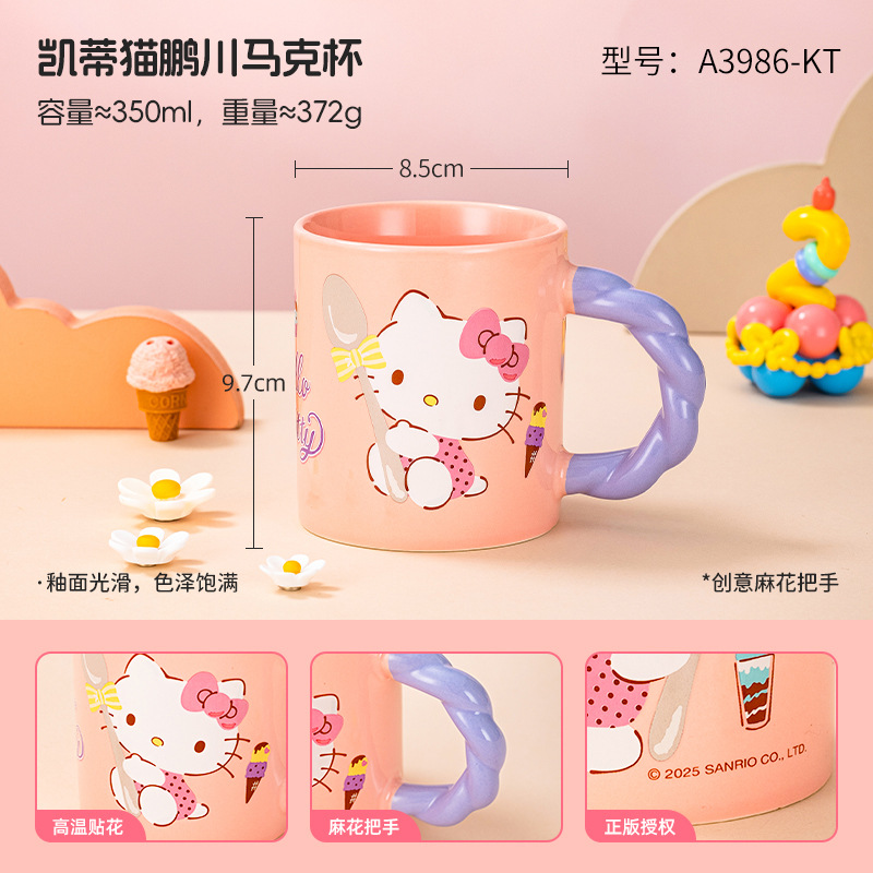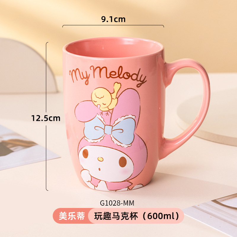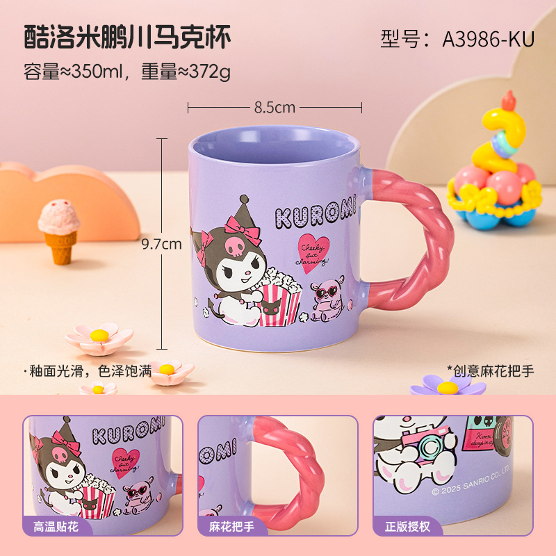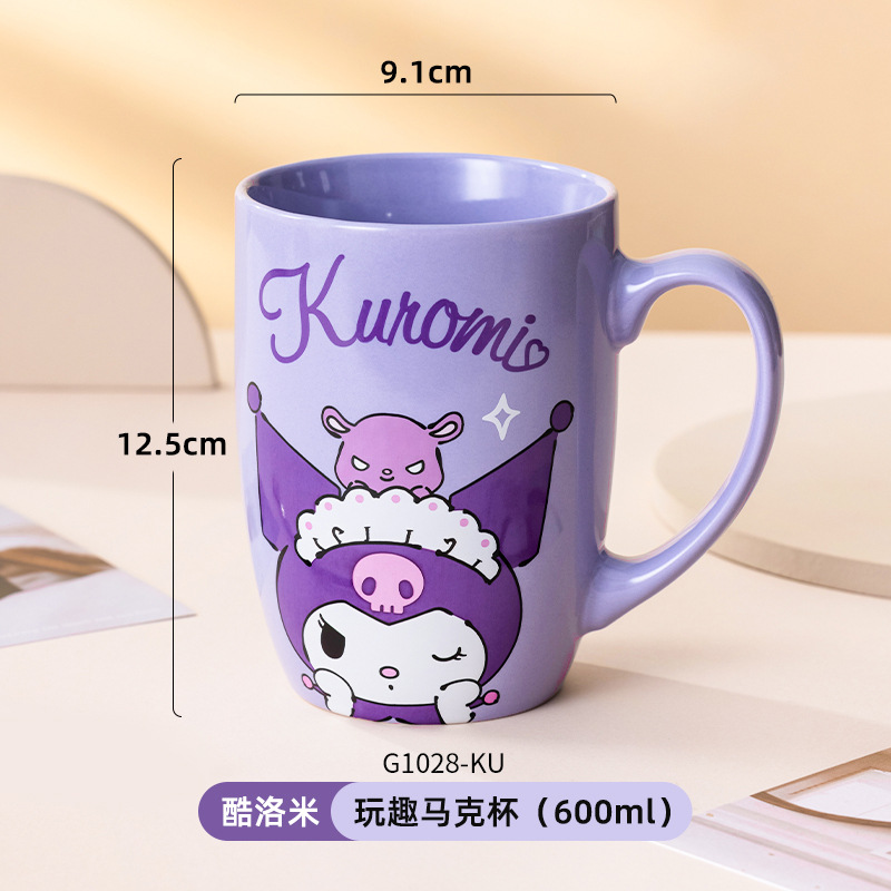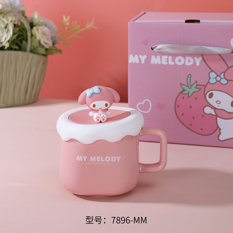 Sanrio 머그잔 실리콘 뚜껑이 달린 고급스러운 세라믹 마시는 컵 Kuromi 헬로 키티 만화 워터 컵 도매