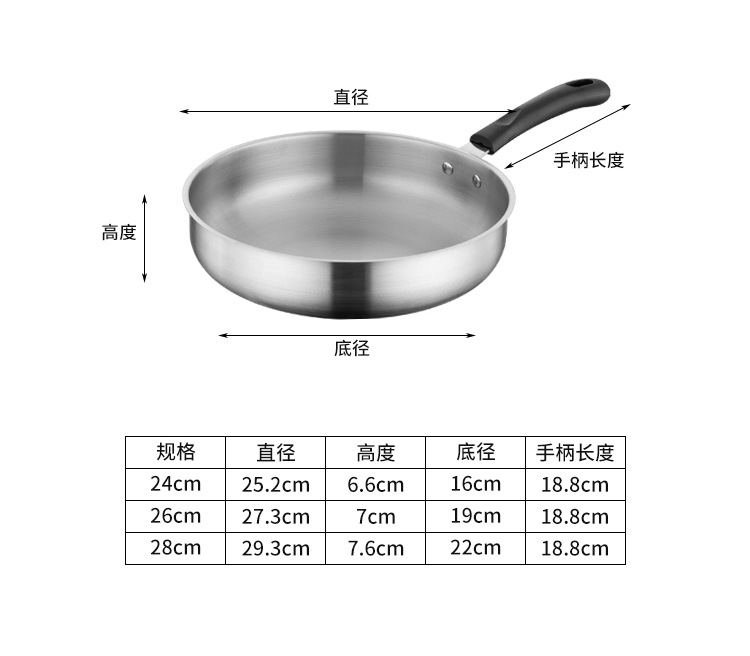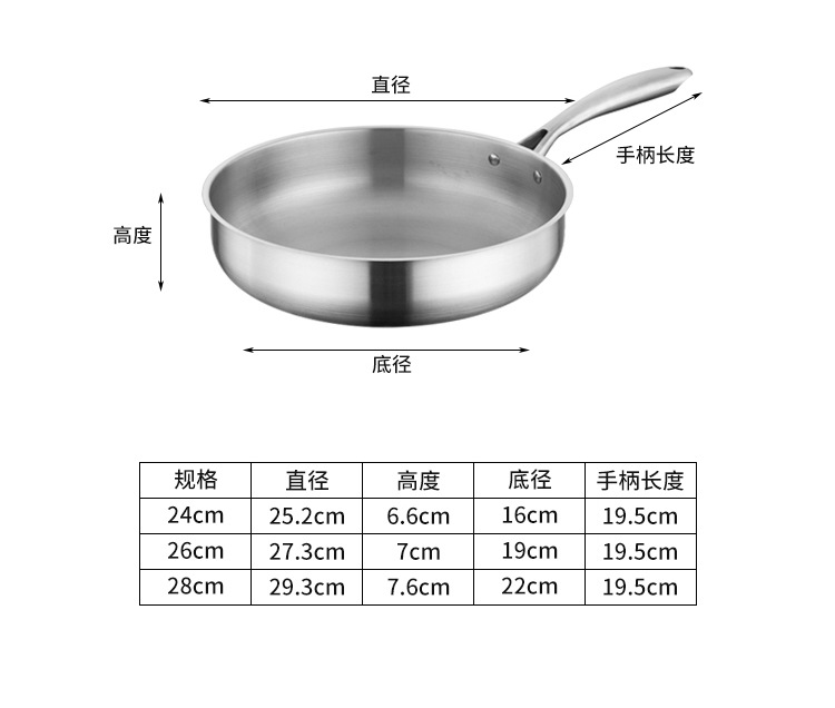 스테인레스 스틸 프라이팬 가정용 코팅되지 않은 팬 가스 스토브 유도 쿠커 유니버설 워크 팬케이크 오믈렛 작은 팬