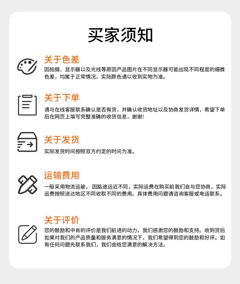 고객님, 저희 쇼핑몰은 중국 1688 플랫폼을 기반으로 한 구매대행 서비스를 제공합니다. 이는 고객님의 요청에 따라 해외 상품을 대신 주문하고 수입·배송해드리는 방식이며, 저희는 상품의 판매자가 아닌 구매를 대행하는 역할을 수행합니다. 이에 따라 아래와 같은 특수한 정책이 적용되며, 꼭 숙지하신 후 주문해 주시기 바랍니다.