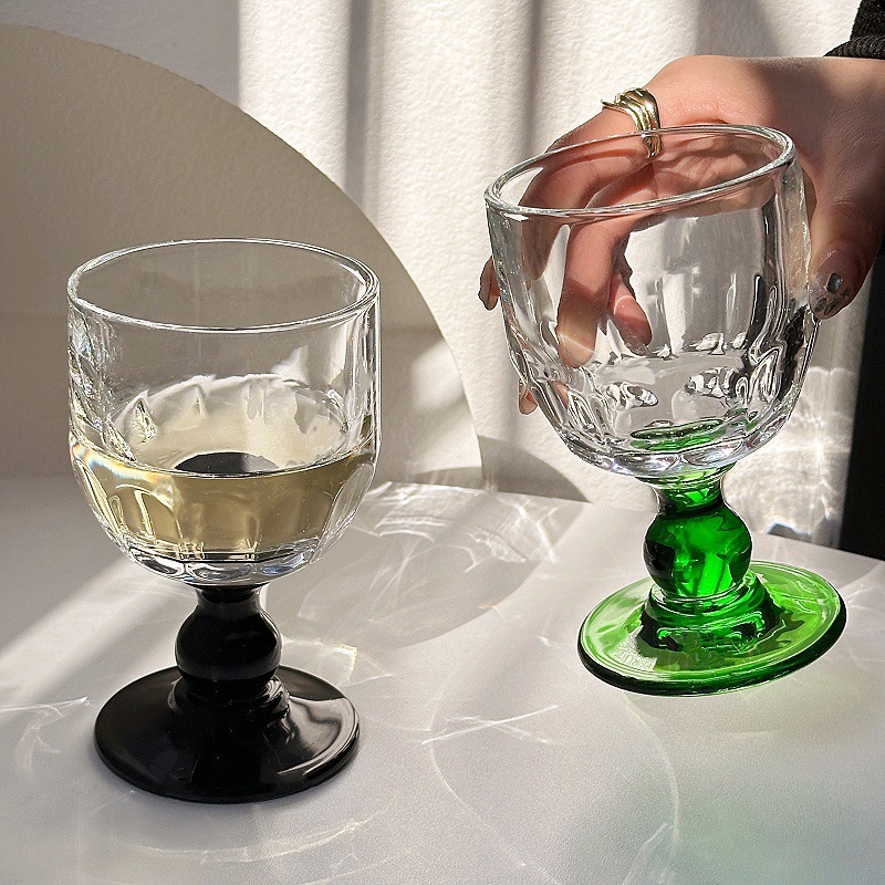중간 고대 와인 유리 유리 다채로운 음료 유리 틈새 분위기 유리 잔 잔 샴페인 유리 와인 유리