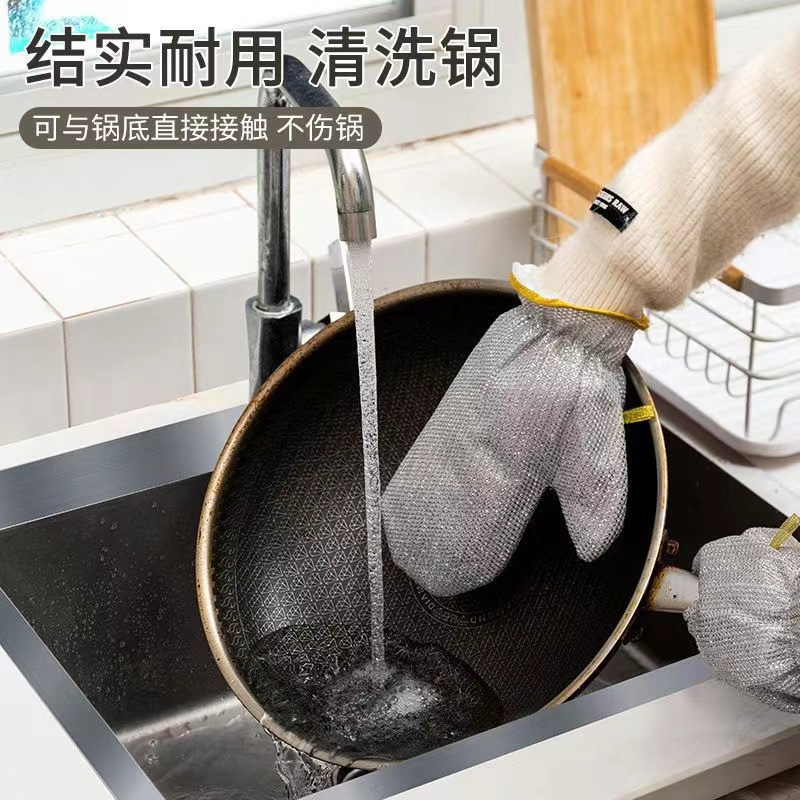 주방용 실버 와이어 설거지 장갑, 단열 및 화상 방지 스틸 와이어 장갑, 청소용 수세미 다기능 장갑