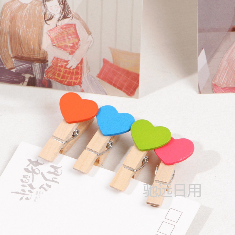 치위안 미니 클립 3.5cm 창의적인 사진 나무 하트 컬러 클립 유치원 사진 벽 DIY 수제 클립