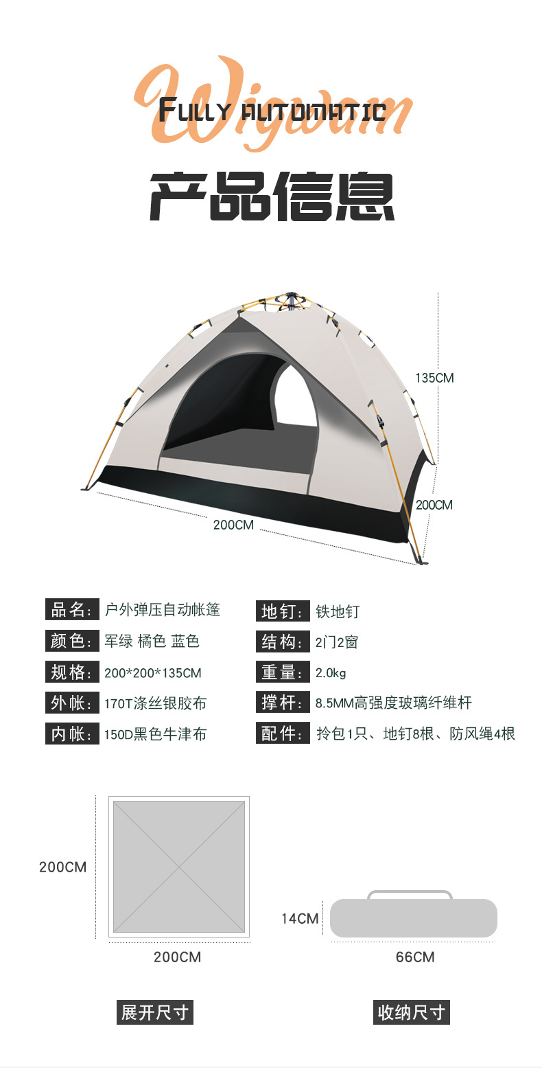 텐트 야외 캠핑 캐노피 휴대용 자동 캠핑 장비 공원 피크닉 실내 어린이 공원 방비
