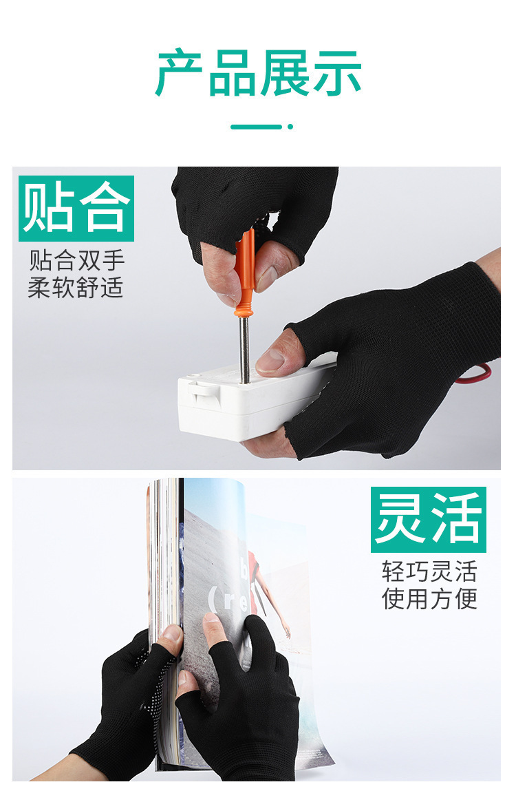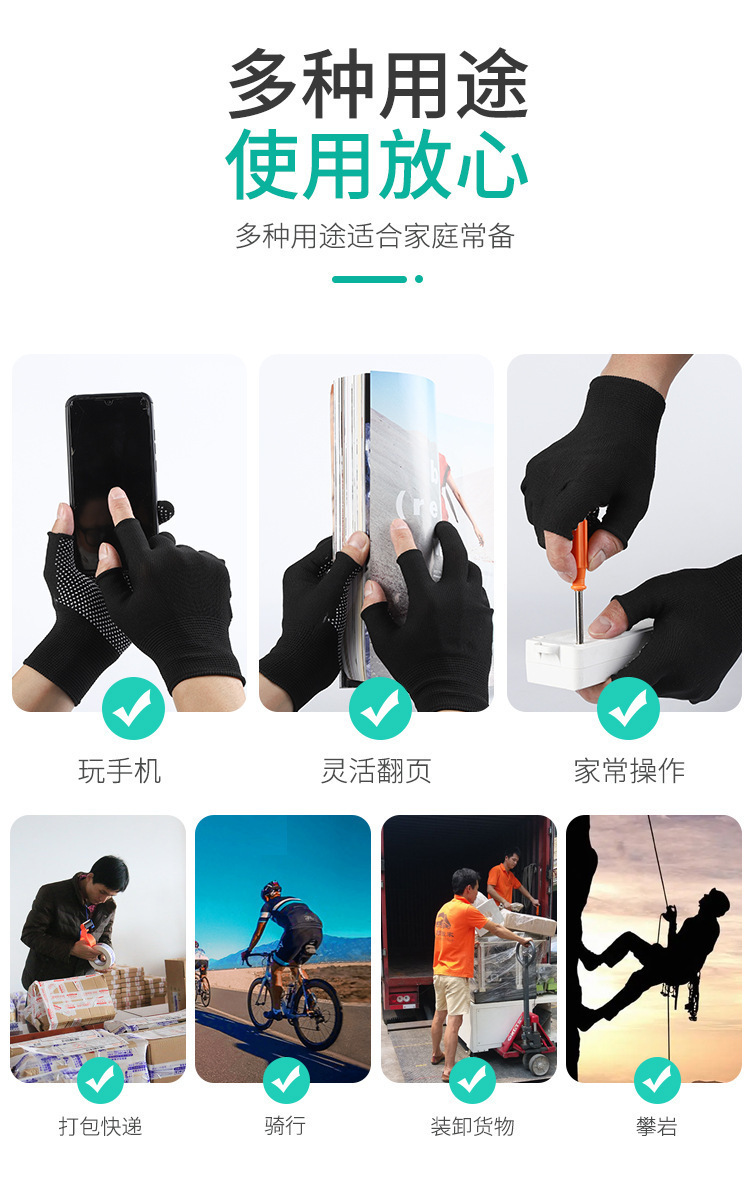 익스프레스 패킹 특수 장갑 이슬 두 손가락 남성과 여성 작업 낚시는 터치 스크린 노동 보호 내마모성 미끄럼 방지 테이크 아웃 라이딩