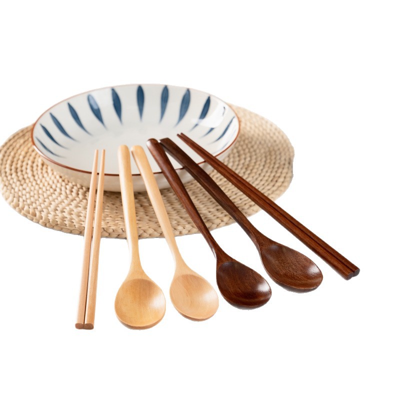 일본식 나무 숟가락과 젓가락 2종 세트 긴 손잡이 커플 학생 성인 휴대용 숟가락과 젓가락 식기