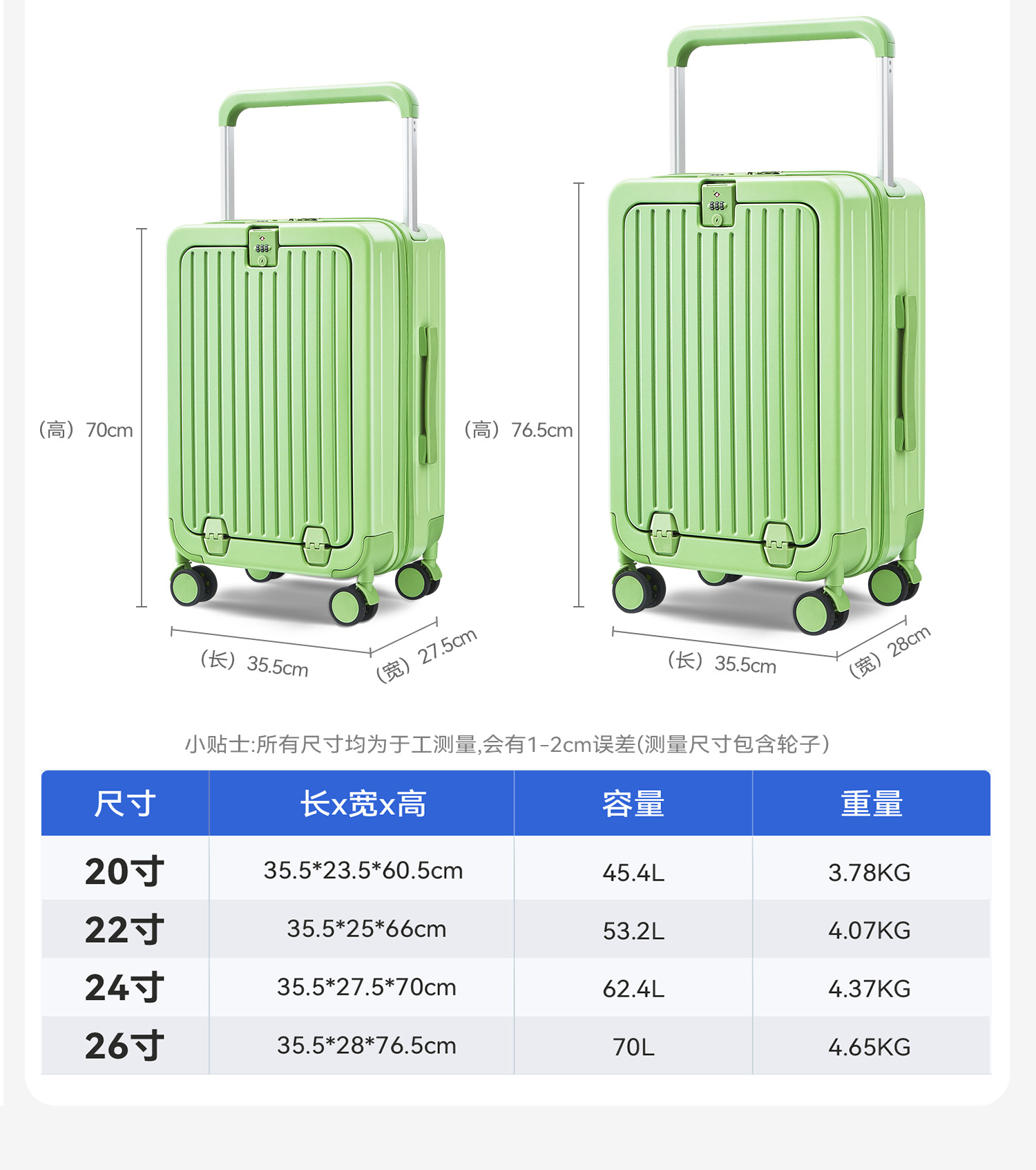 24 인치 낙하 방지 수하물 케이스 전면 개방 다기능 20 인치 수하물 와이드 풀로드 가방