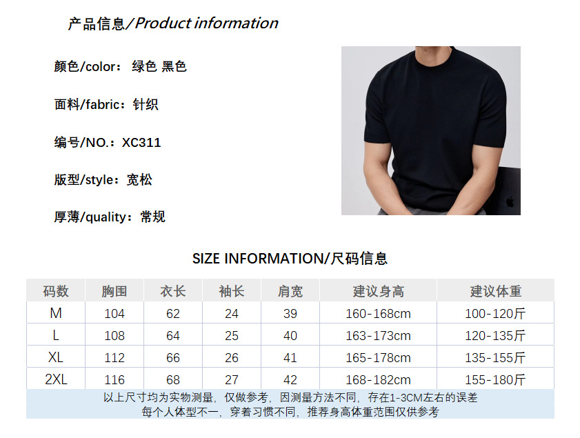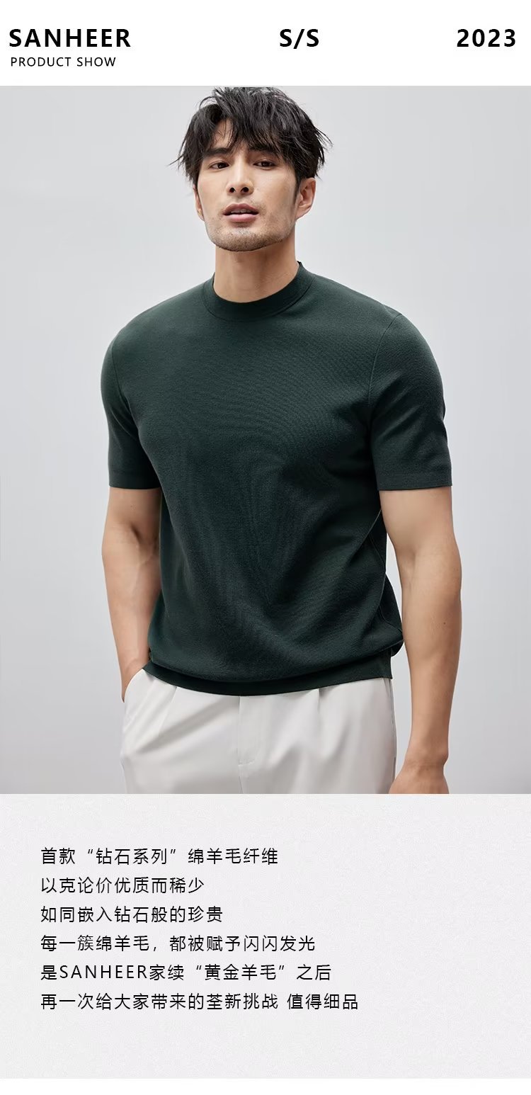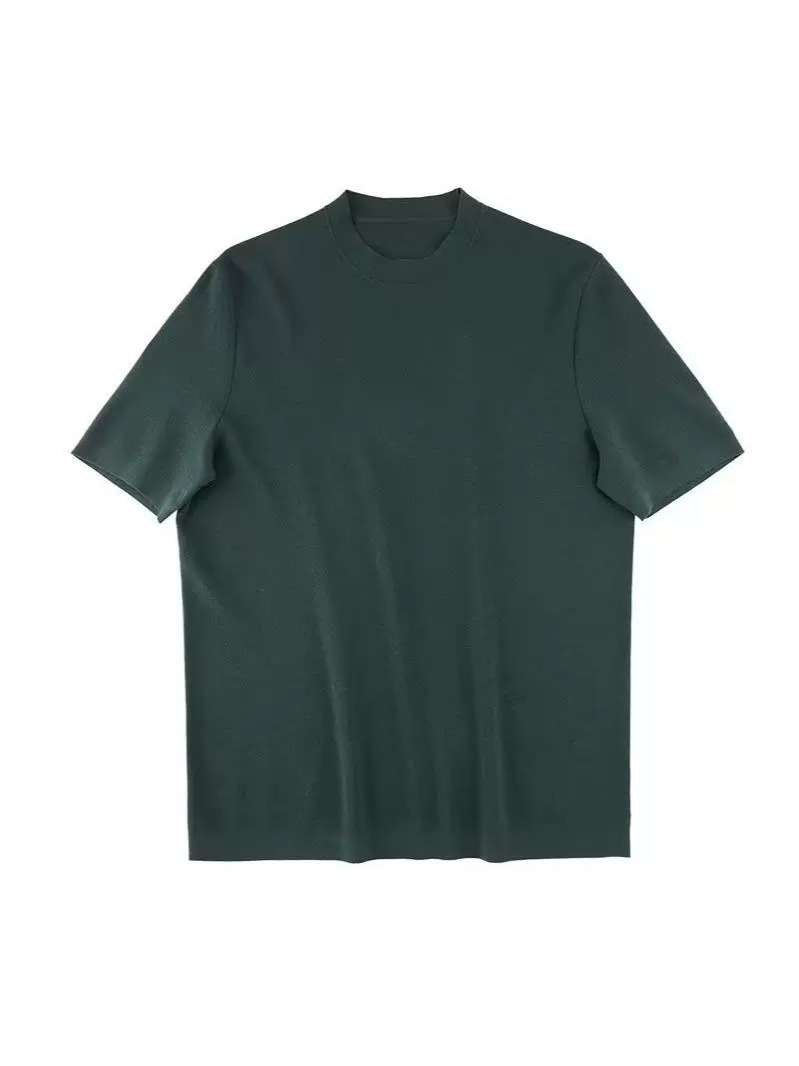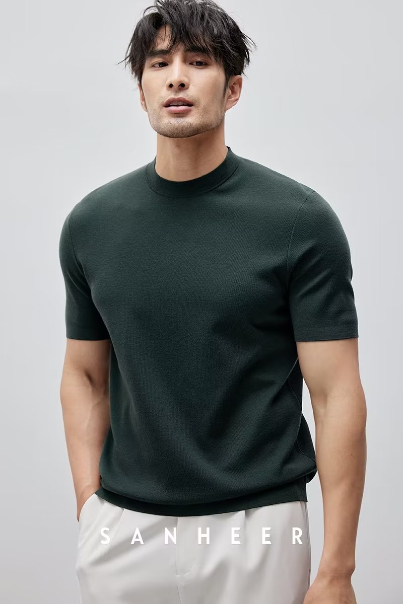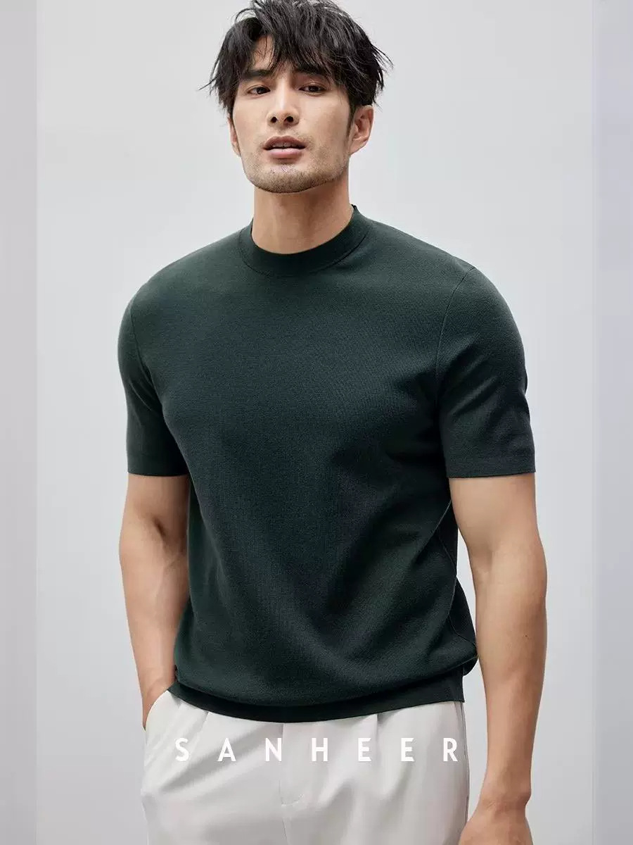 유럽과 미국의 터프 가이 머서 코튼 아이스 실크 티셔츠 근육 남성용 작은 목선 슬림 핏 짧은 소매 시원한 통기성 니트 스웨터