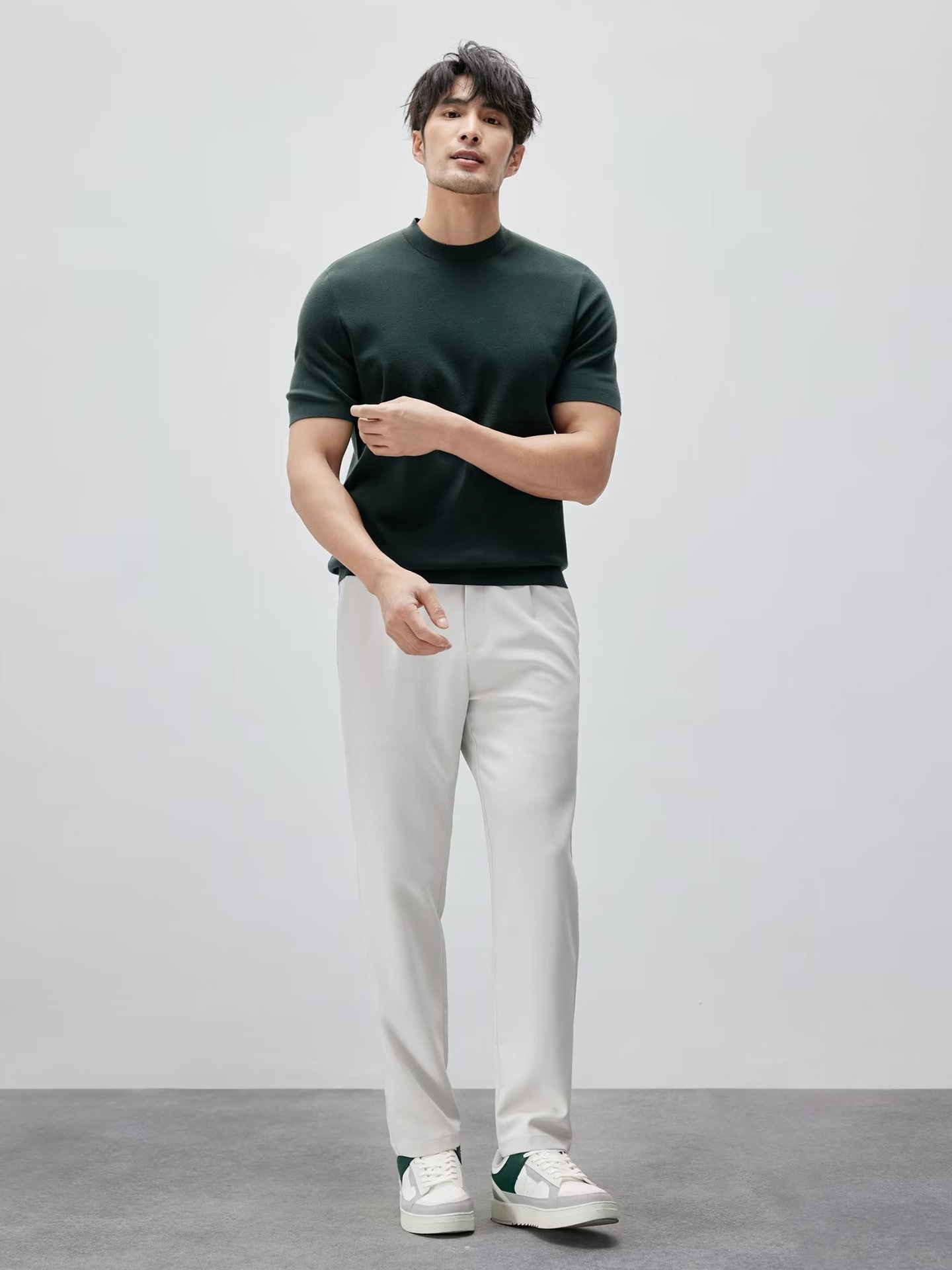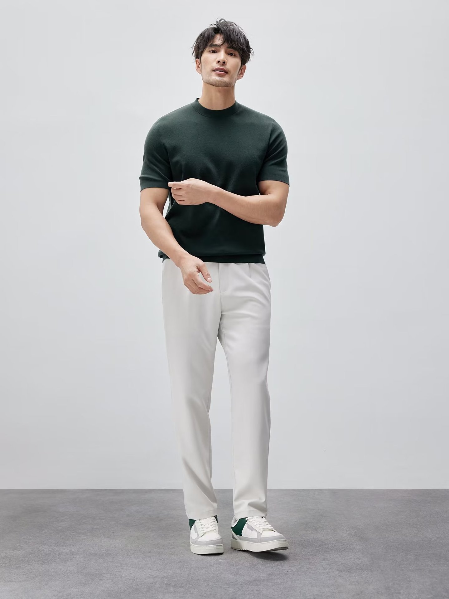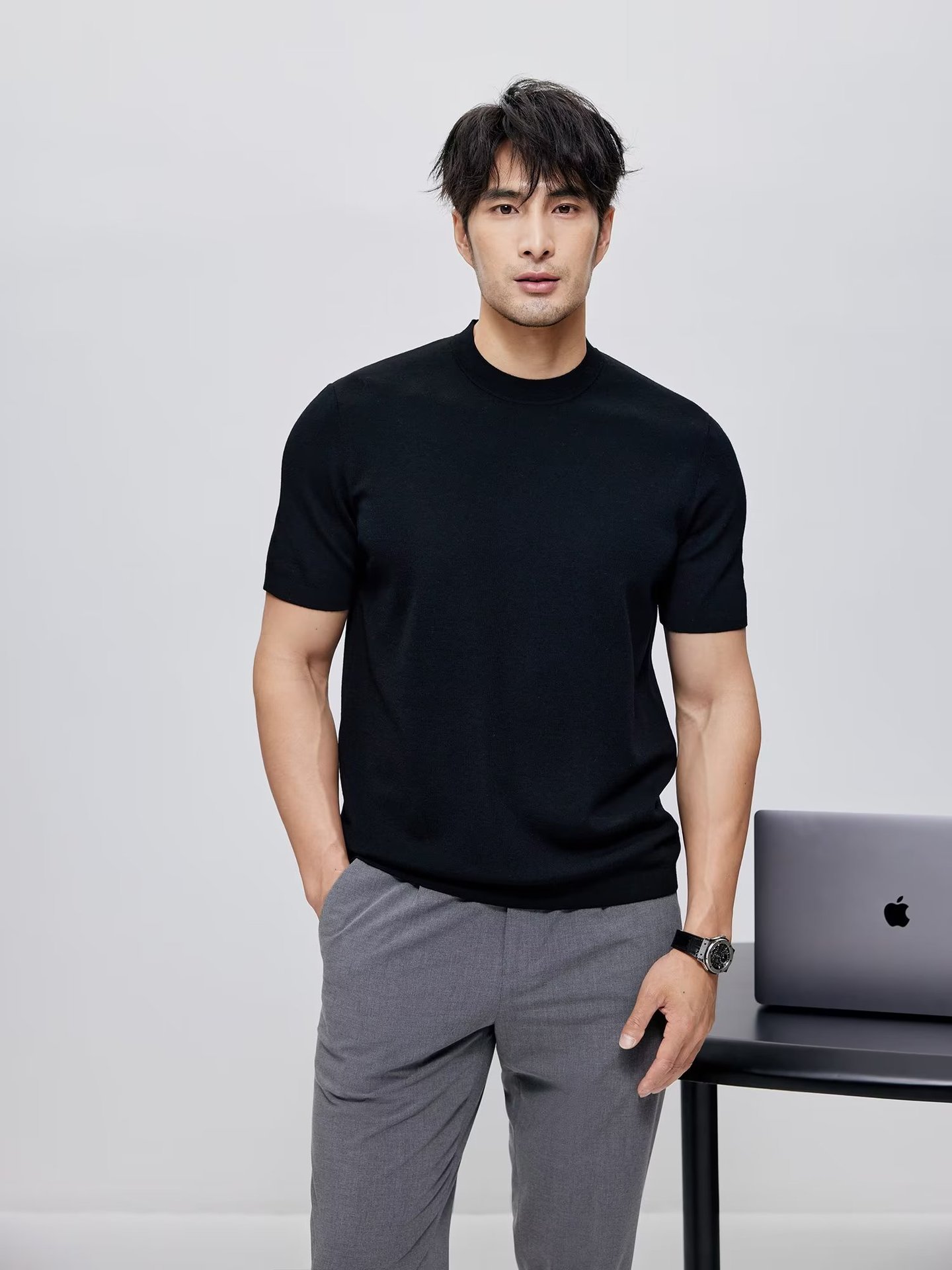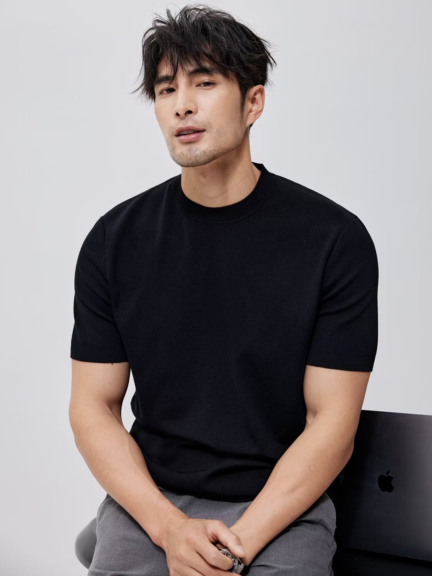 유럽과 미국의 터프 가이 머서 코튼 아이스 실크 티셔츠 근육 남성용 작은 목선 슬림 핏 짧은 소매 시원한 통기성 니트 스웨터