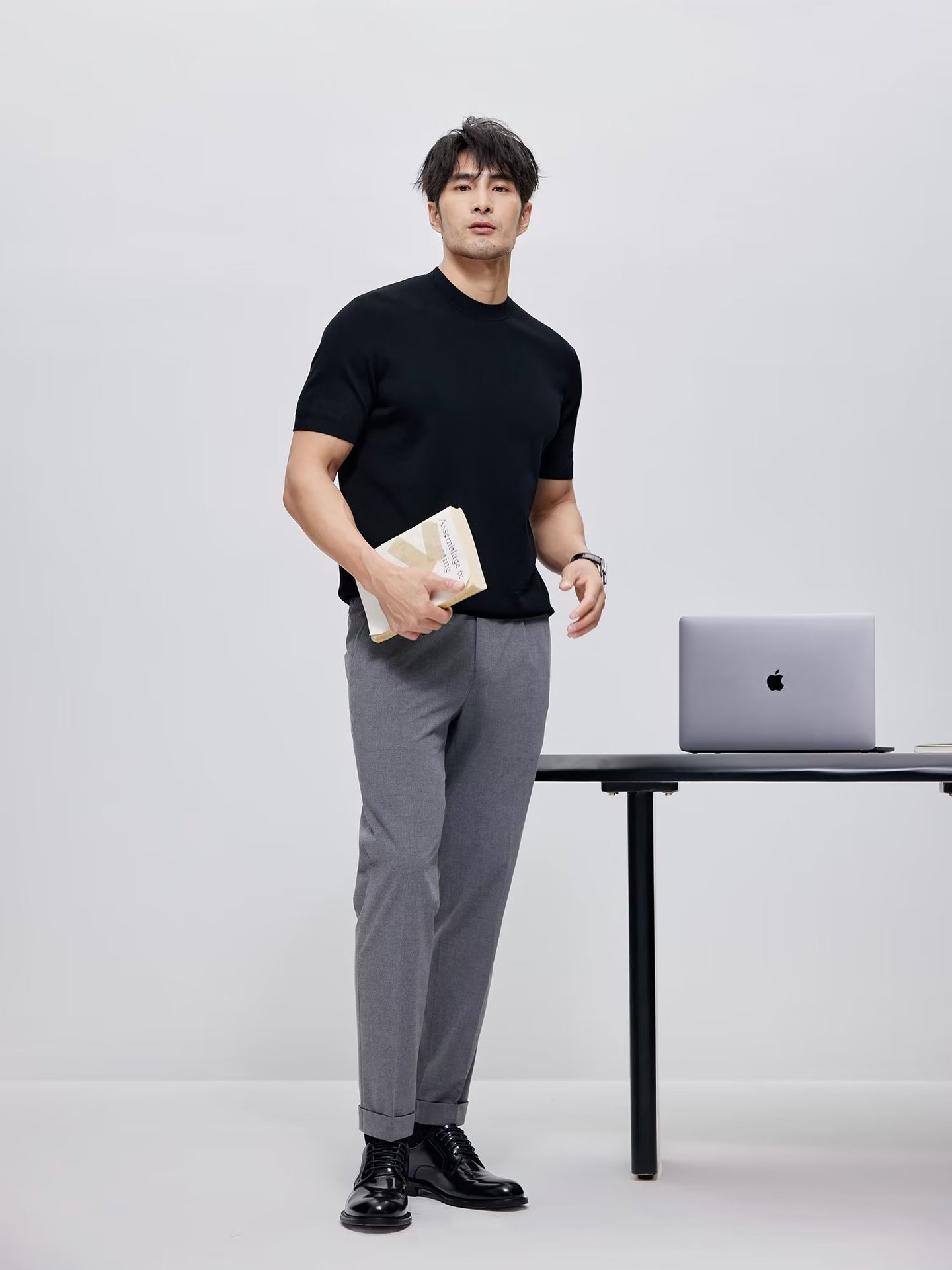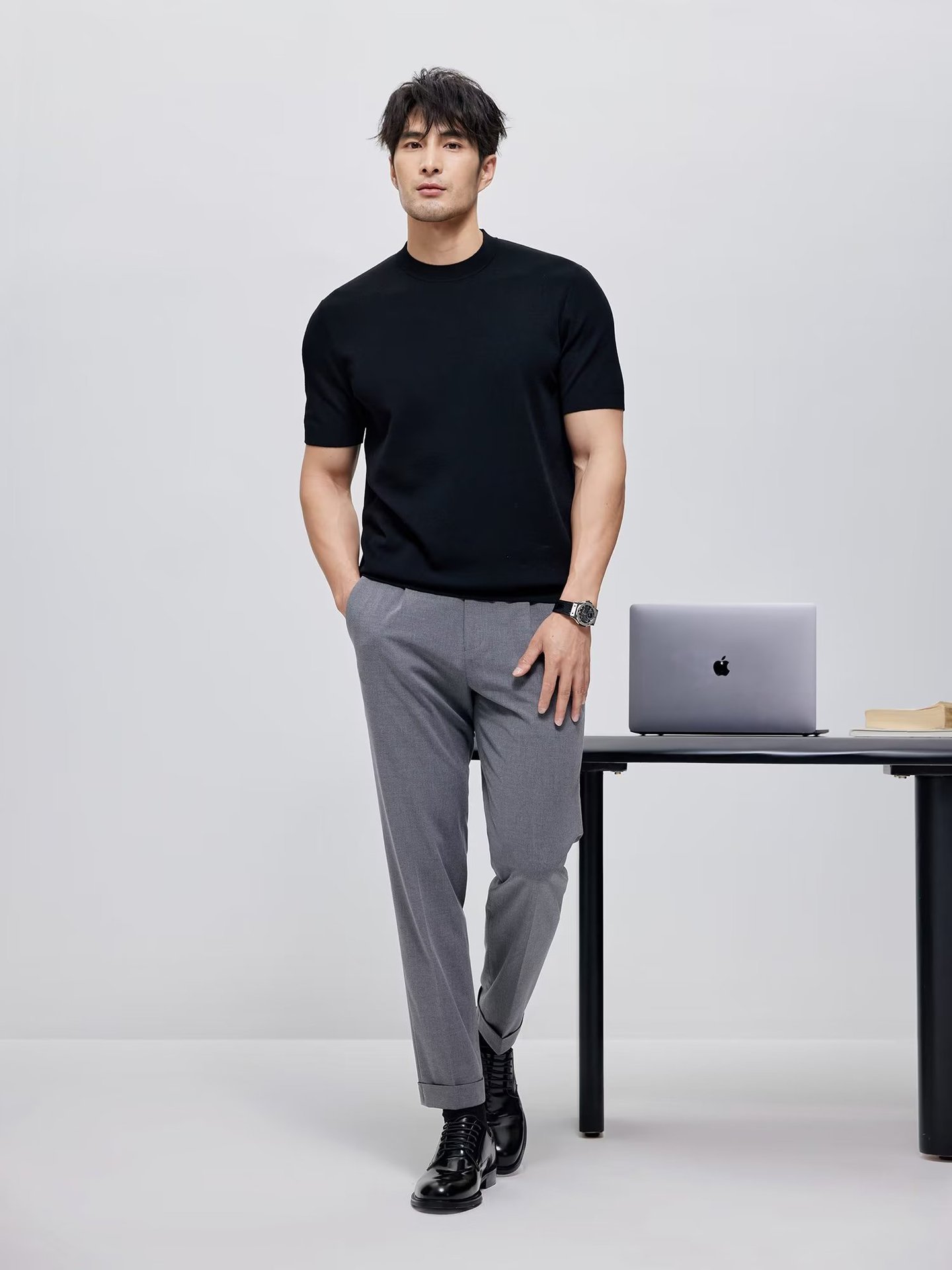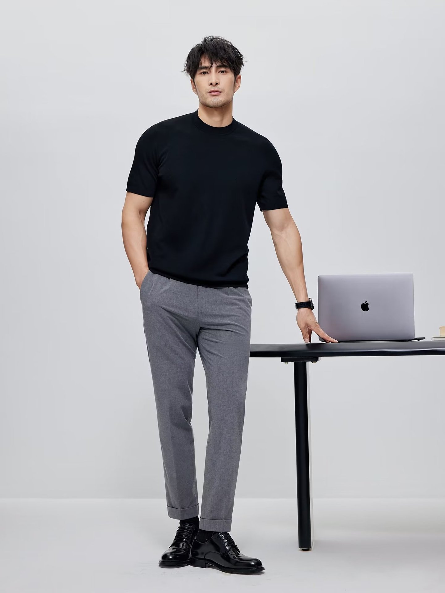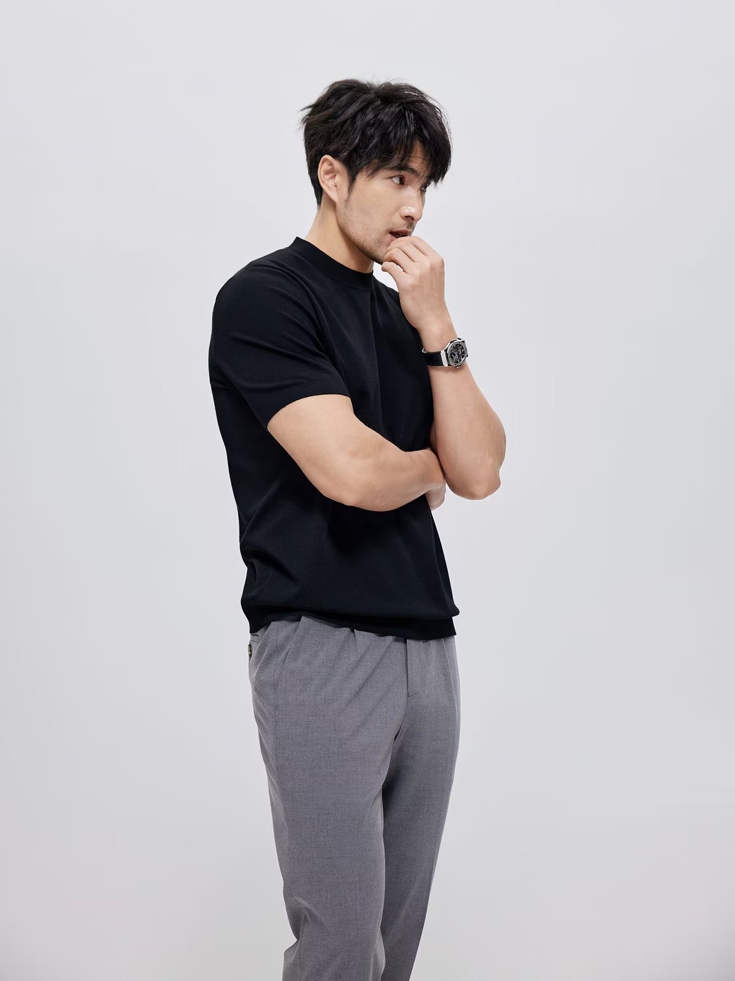 유럽과 미국의 터프 가이 머서 코튼 아이스 실크 티셔츠 근육 남성용 작은 목선 슬림 핏 짧은 소매 시원한 통기성 니트 스웨터