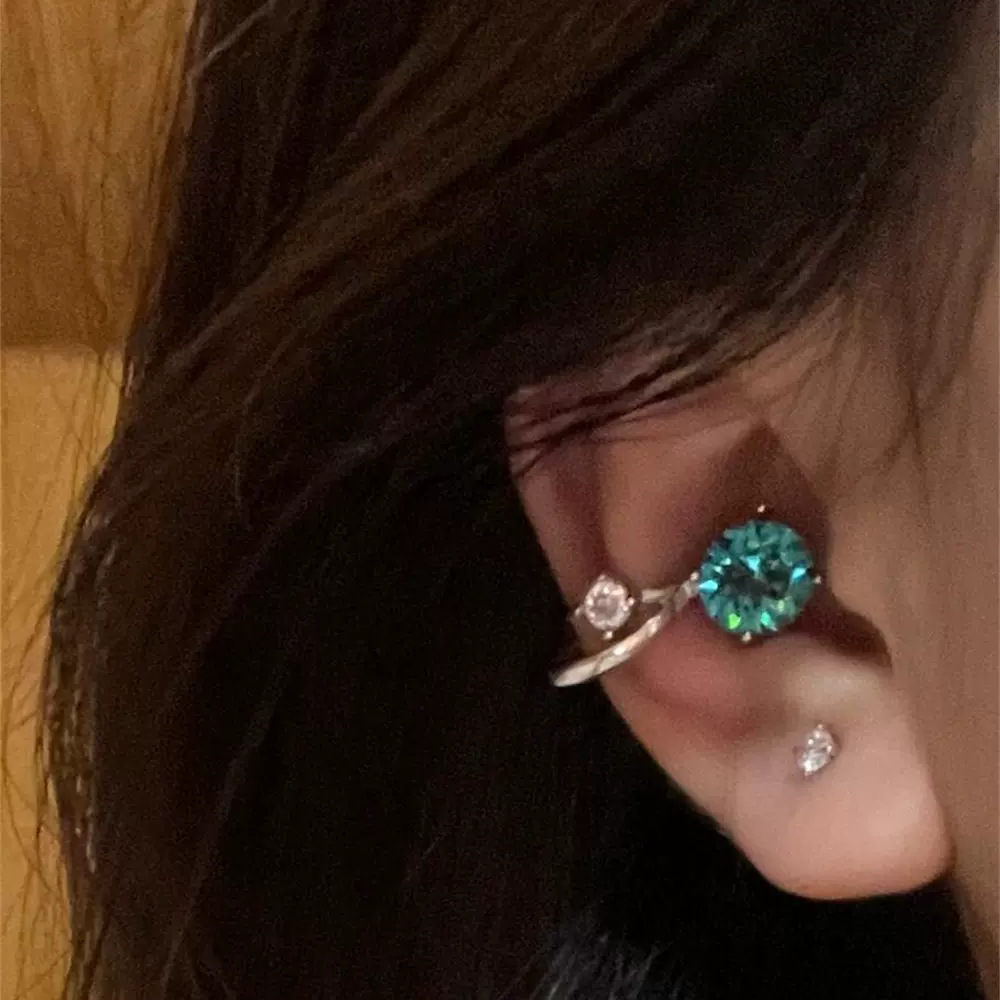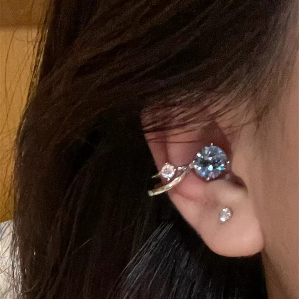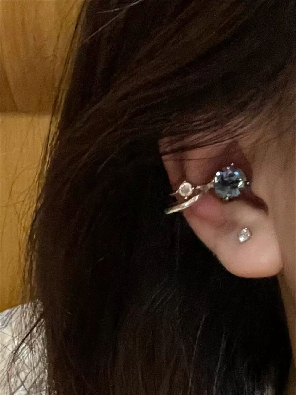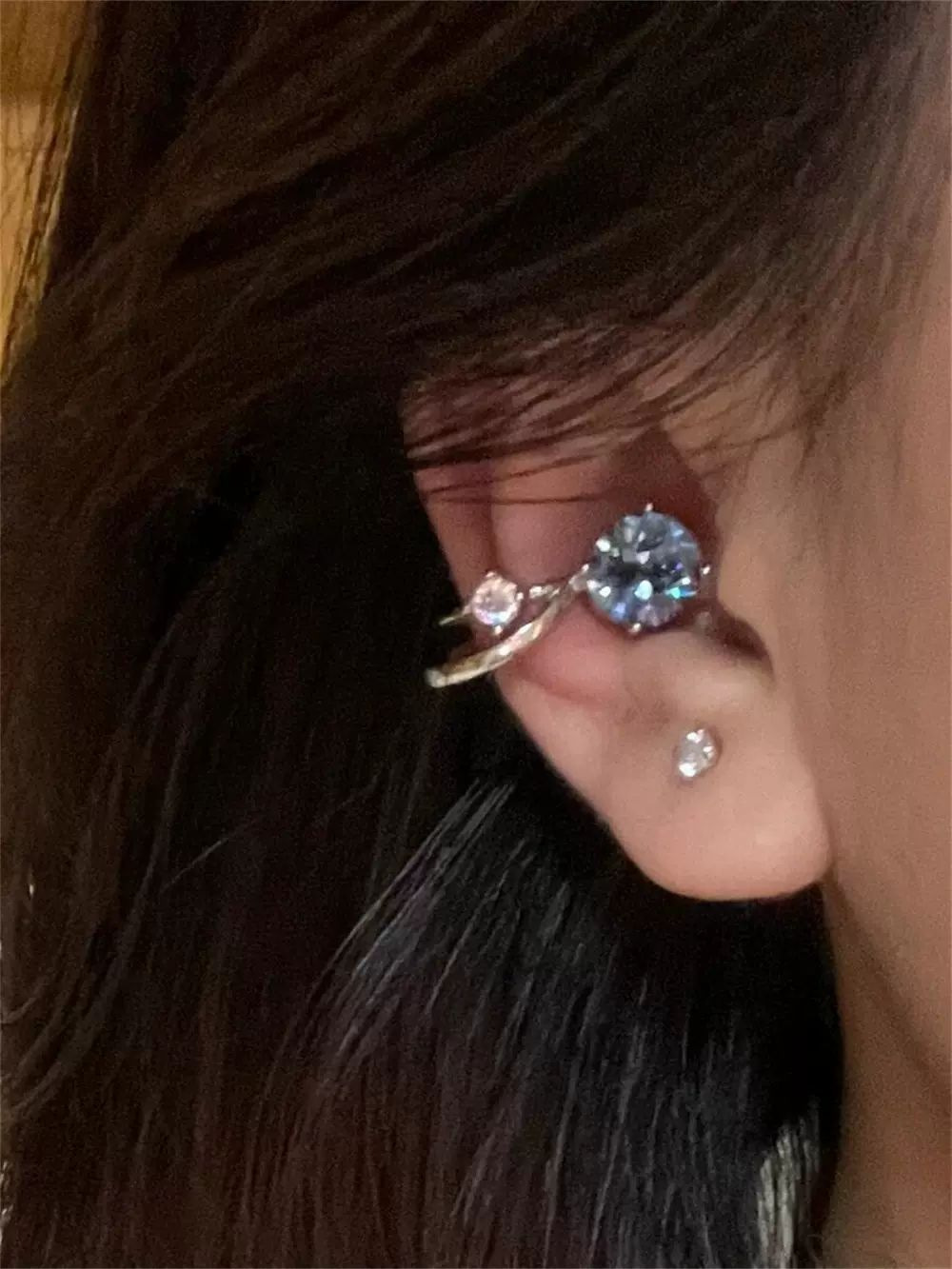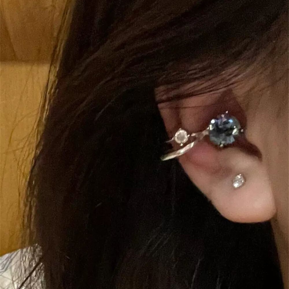 주즈미니 블루 지르콘 라인 귀 클립 여성 틈새 디자인 귀 클립 독특한 귀 유행