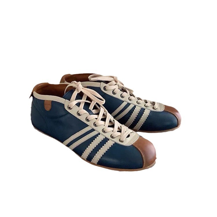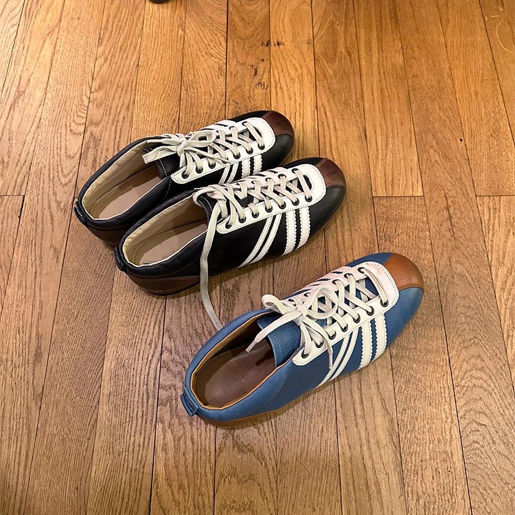 양가죽 버전 ~ Maillard 소수 색상 일치 독일 훈련 신발 여성의 두꺼운 밑창 캐주얼 운동화 Forrest Gump 신발 달리기 여성 신발