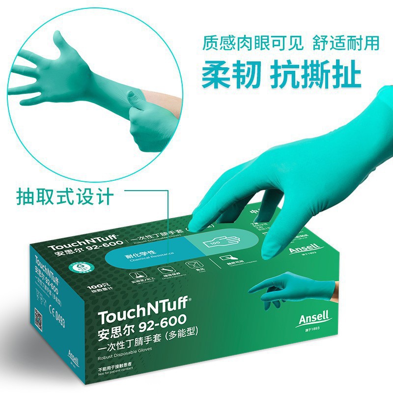 Ansel 92-600 일회용 니트릴 장갑 화학 보호 실험실 산업 청소 주방 노동 보호