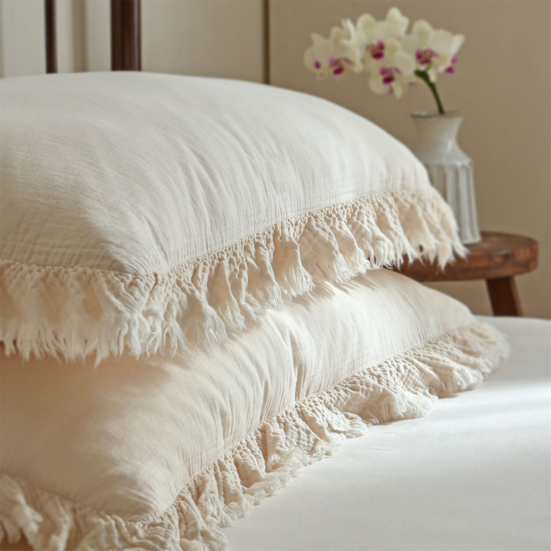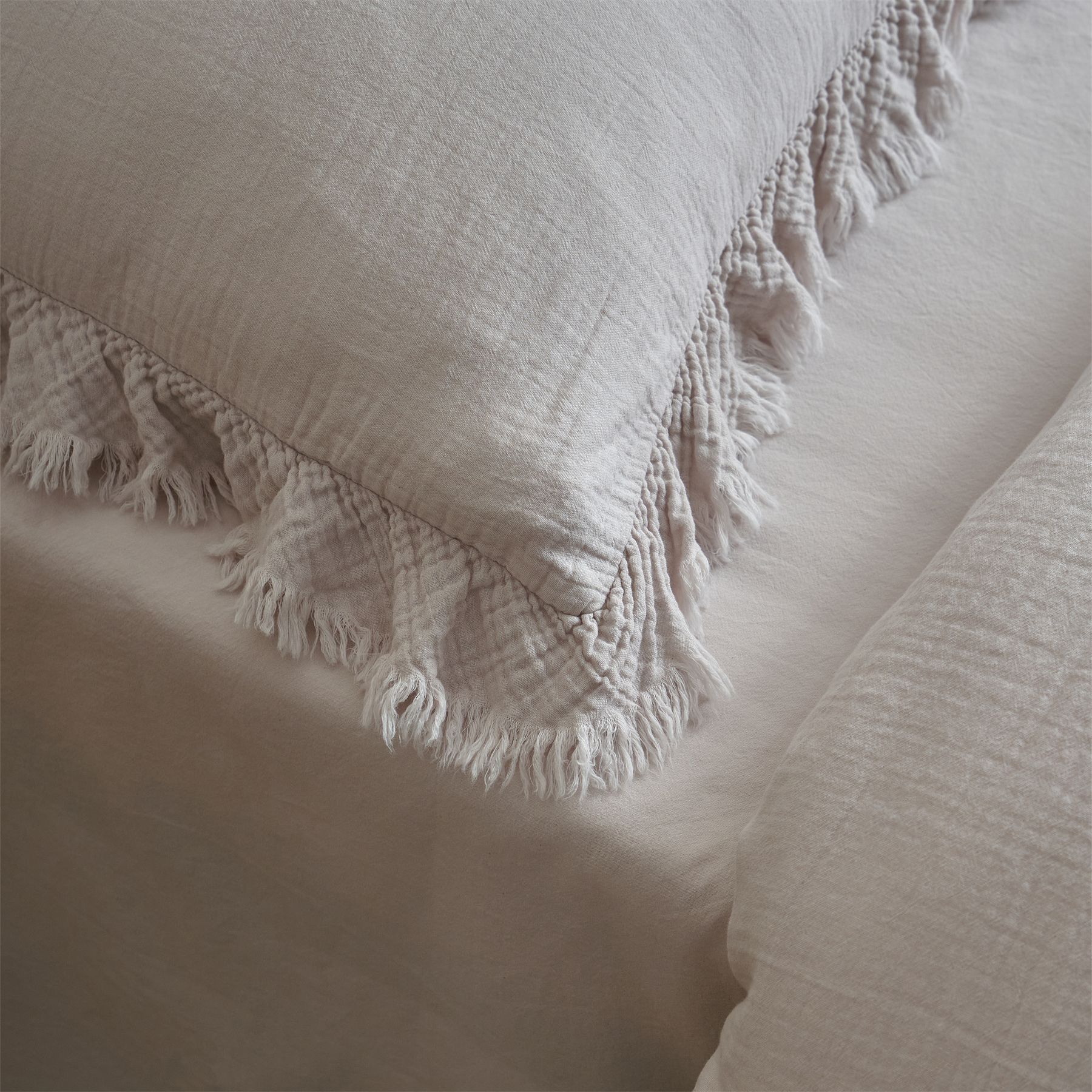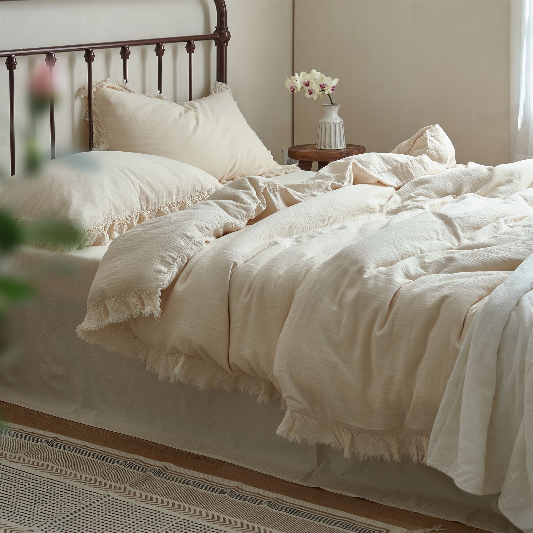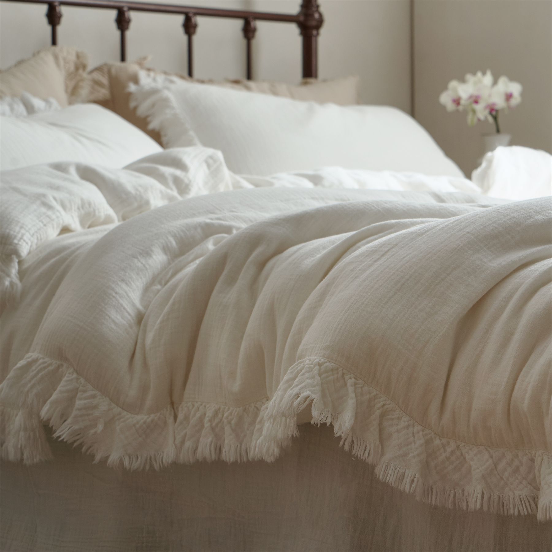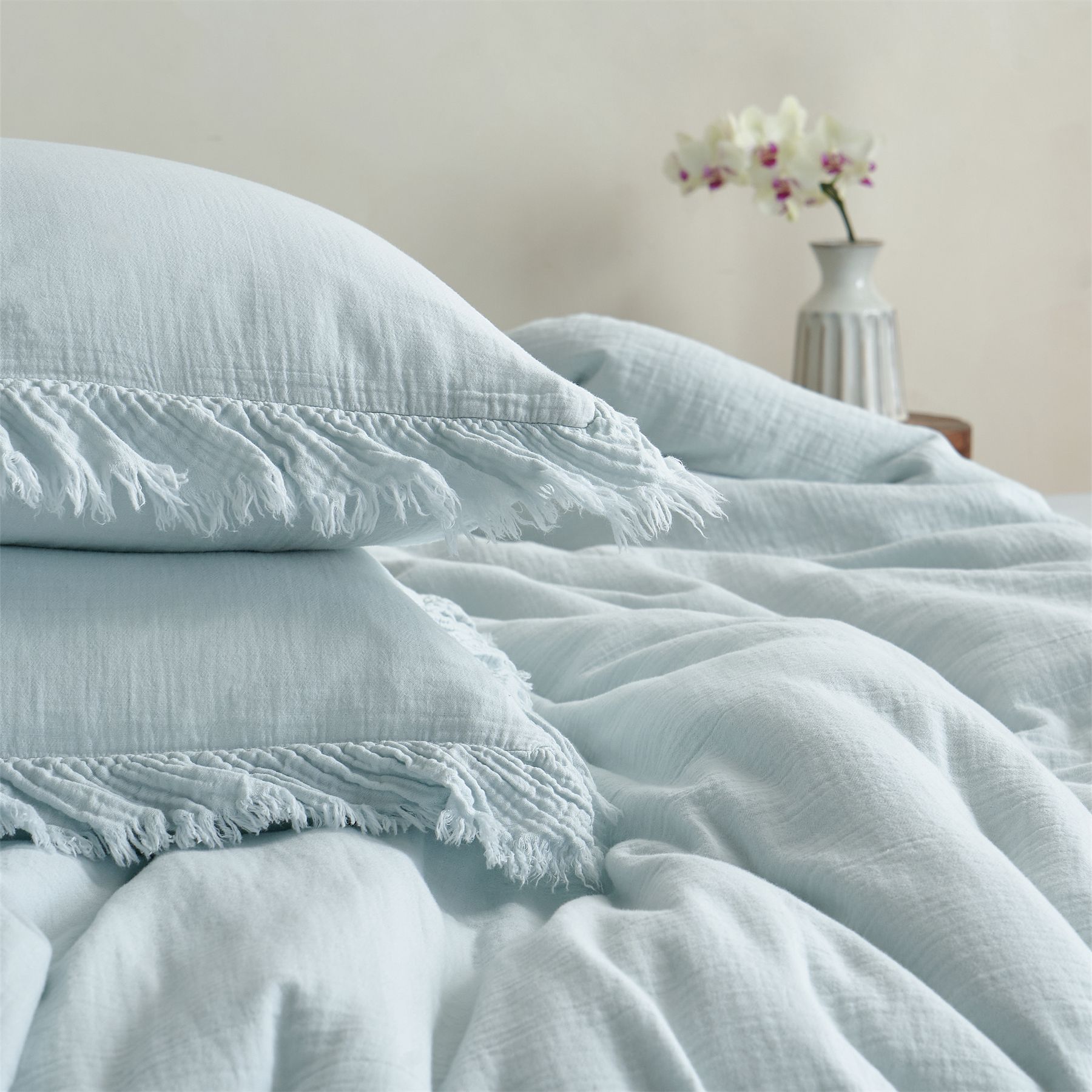 被套包括反面、枕套都是双层纱,床单采用的加密平纹,杜绝双层纱面料做床单有可能会起球的隐患,卖得更安心。