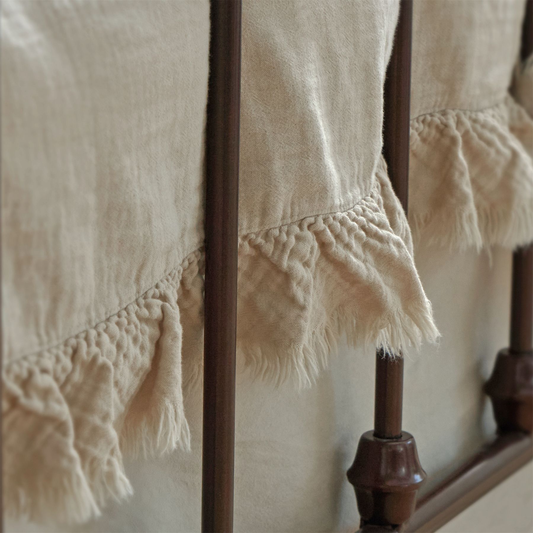 双层纱花边在成品洗染后呈现出特有的自然的抽褶纹理,轻盈飘逸,增加了浪漫的公主气息。