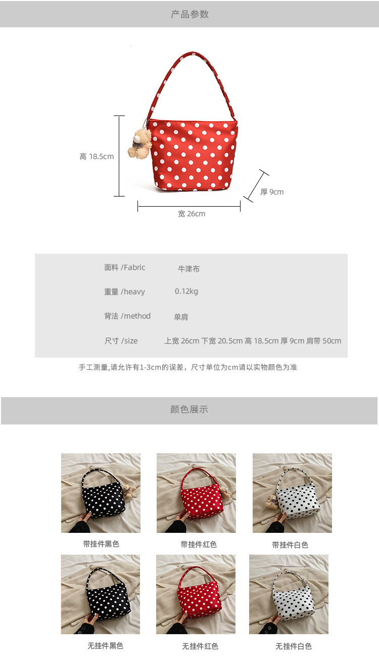 한국식 여성용 가방 옥스포드 천 폴카 포인트 언더암 토트 백 신선한 스타일 유행 여성 대용량 어깨 가방