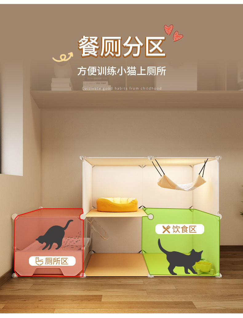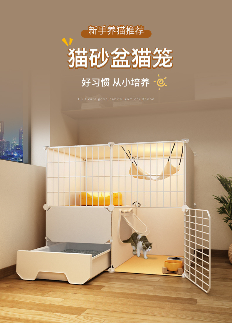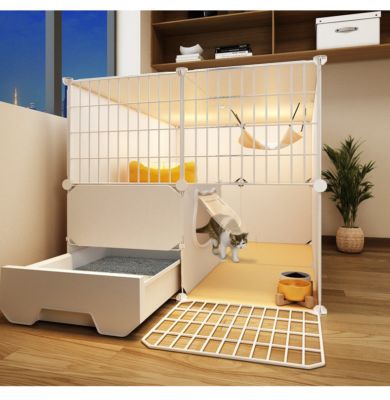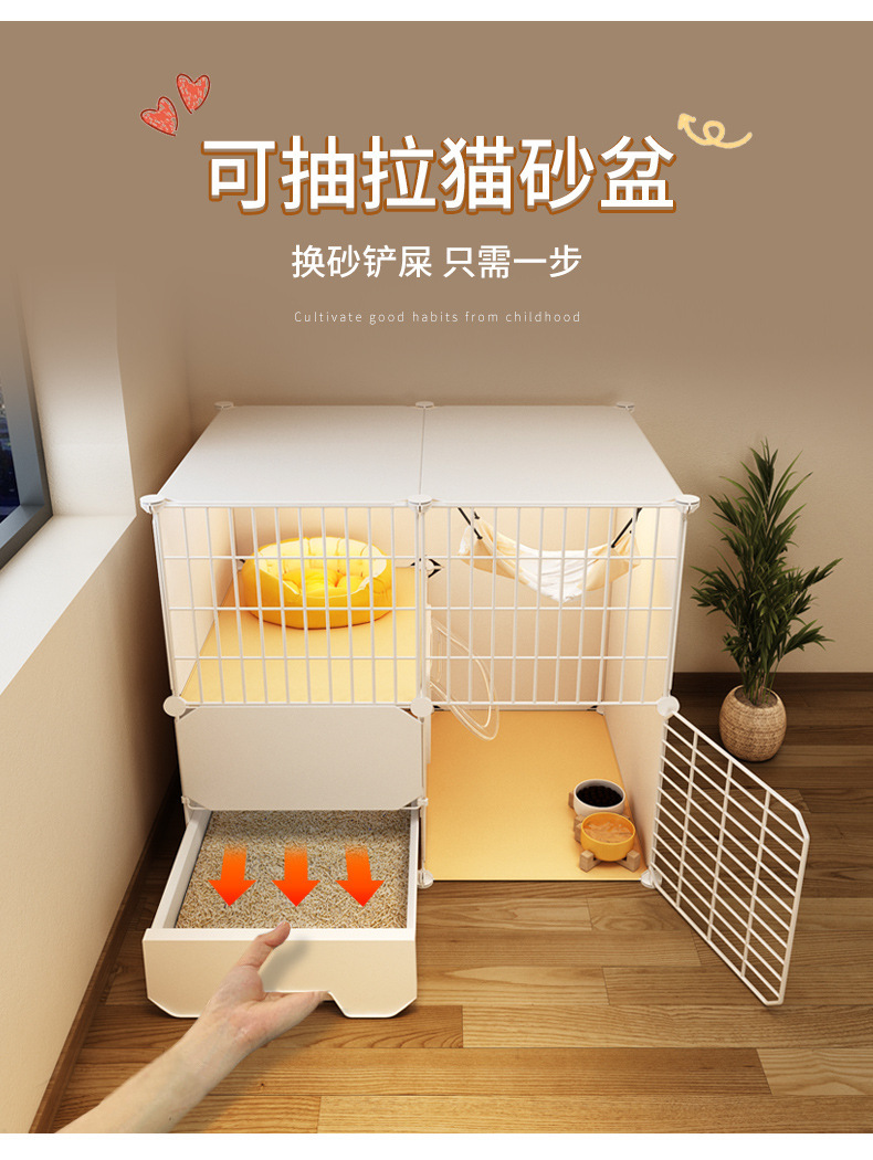 고양이 케이지 가정용 실내 고양이 둥지 화장실 내장 고양이 쓰레기 상자 무료 공간 고양이와 고양이 빌라