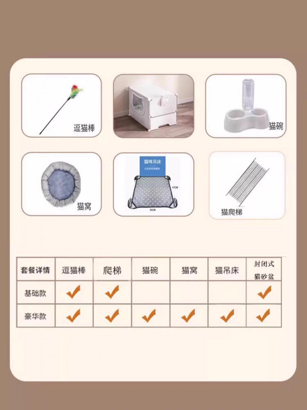통합 화장실 패키지: 폐쇄형 고양이 배변 상자 + 고양이 배변 국자 + 사다리 + 고양이 놀리는 막대가 함께 제공됩니다.