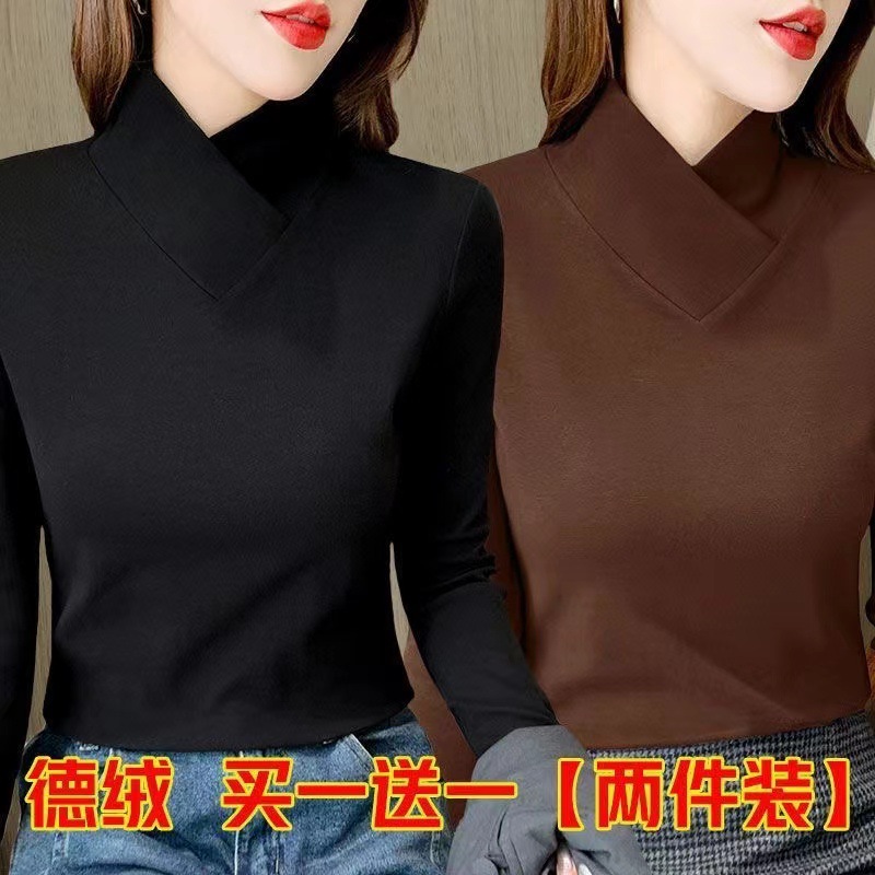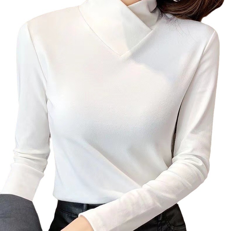 싱글/투 피스 세미 하이 칼라 벨벳 바닥 셔츠 여성의 가을과 겨울 인테리어 봄과 가을 올 매치 새로운 긴 소매 티셔츠 탑 웨스턴 스타일