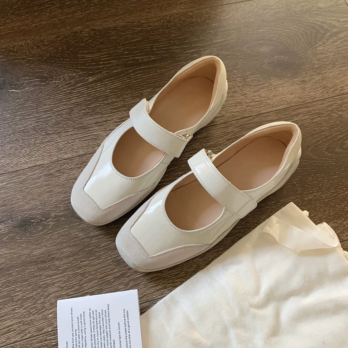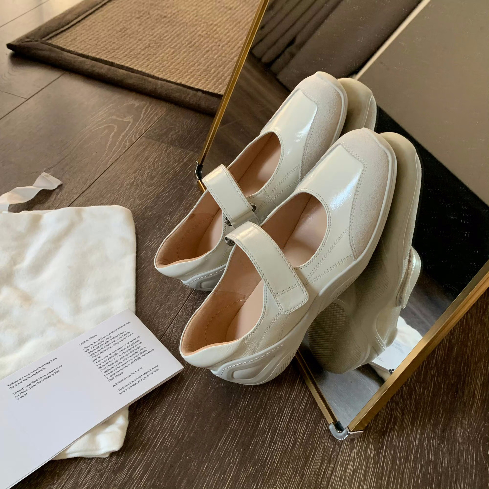 양가죽 버전 ~ 벨크로 소프트 기능성 메리 제인 신발 여성 게으른 정품 가죽 두꺼운 단독 신발 Lefu 신발