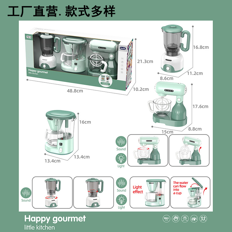 어린이를위한 국경 핫 미니 주방 장난감 시뮬레이션 전기 조명 및 음향 효과 작은 가전 제품 장난감 제조 업체 도매