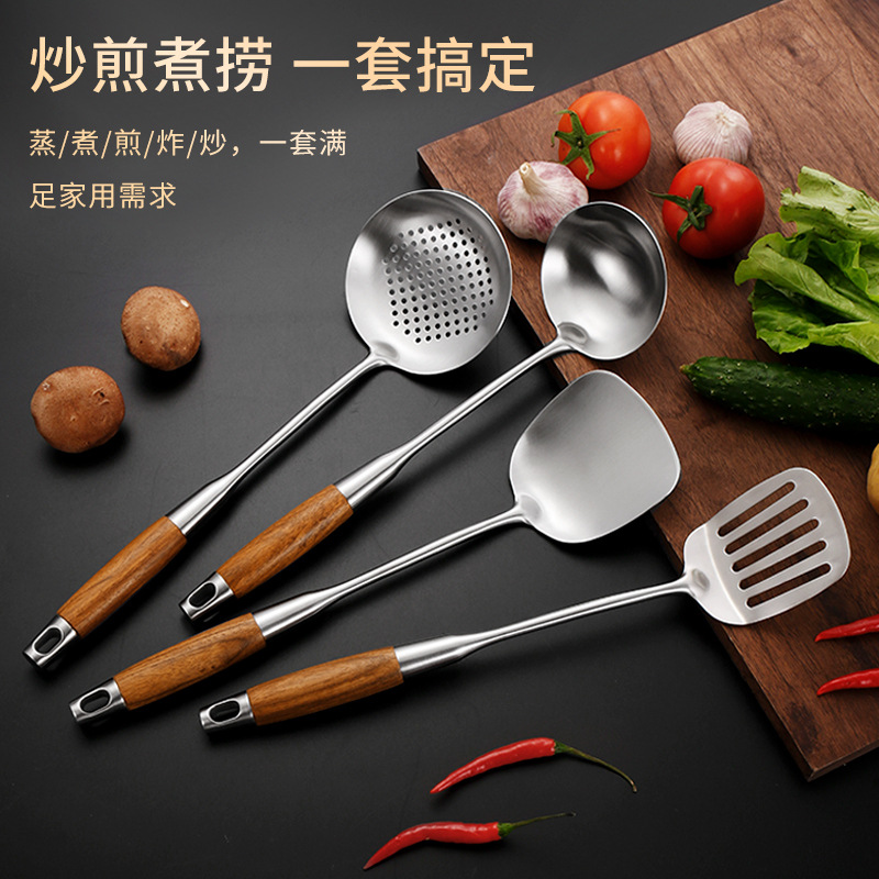 316L 주걱 볶음 삽 주방 고온 방지 나무 손잡이 주방 주방 세트 가정용 볶음 숟가락 철삽