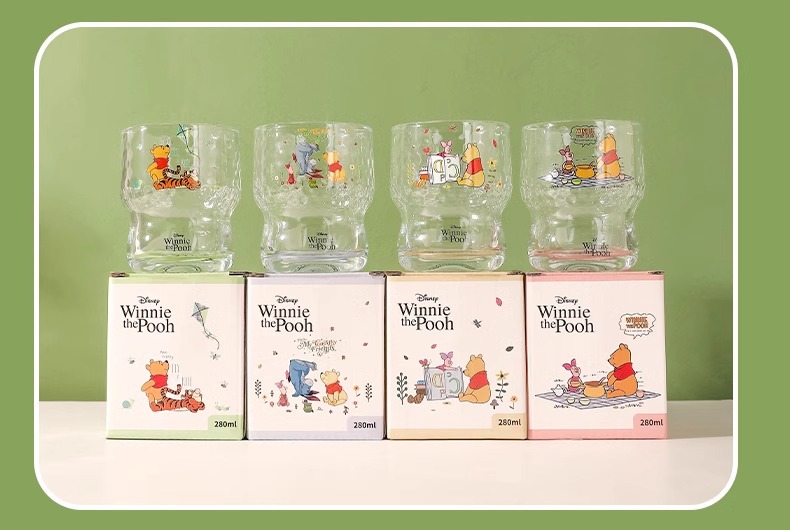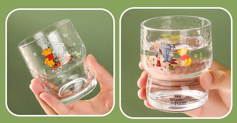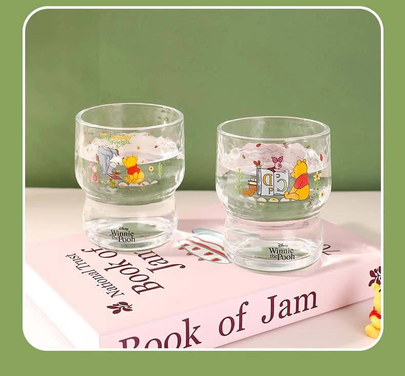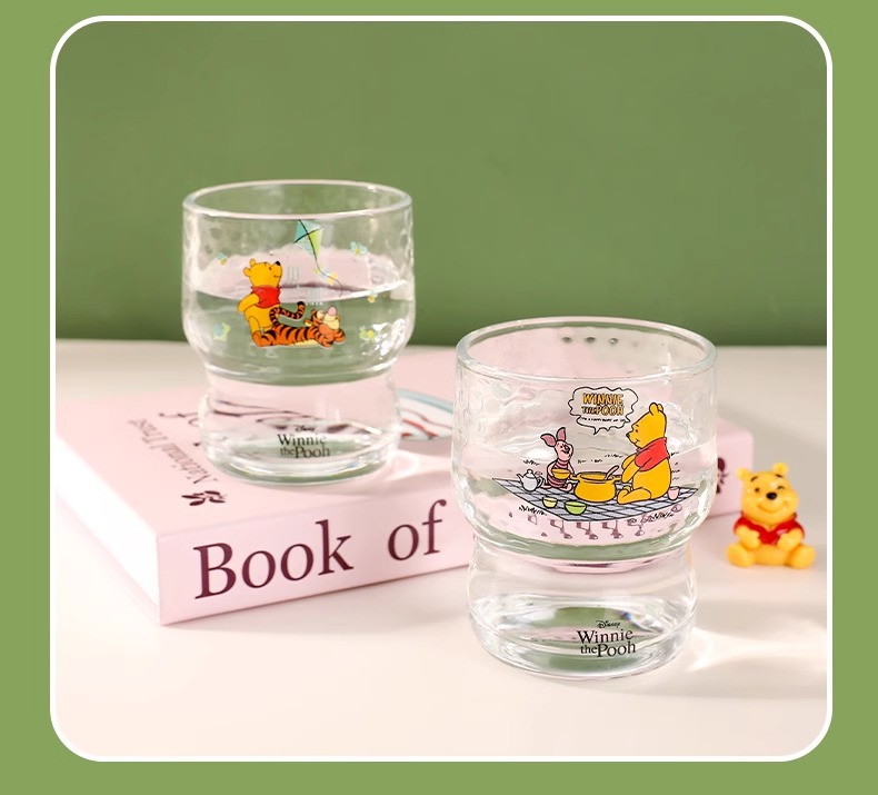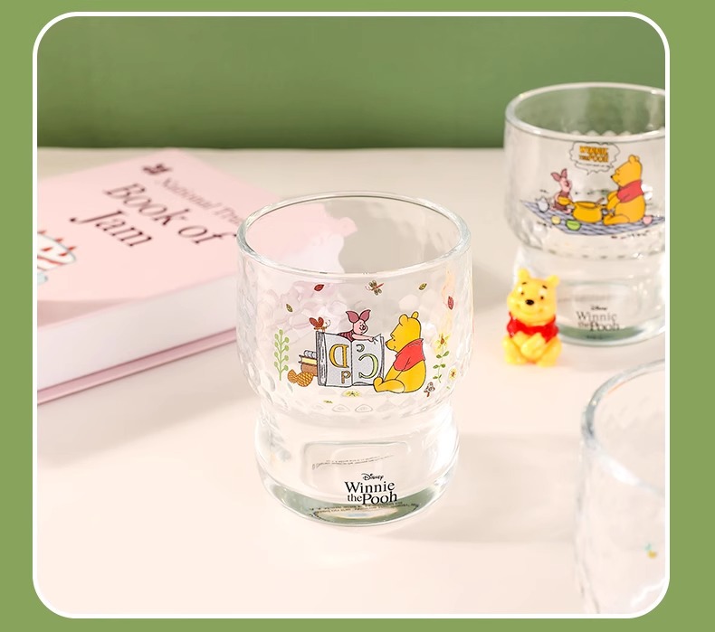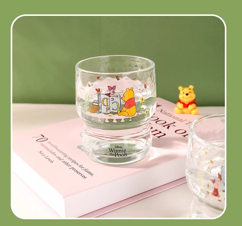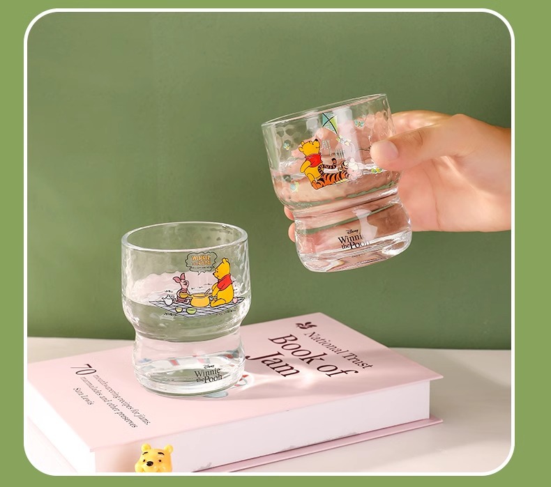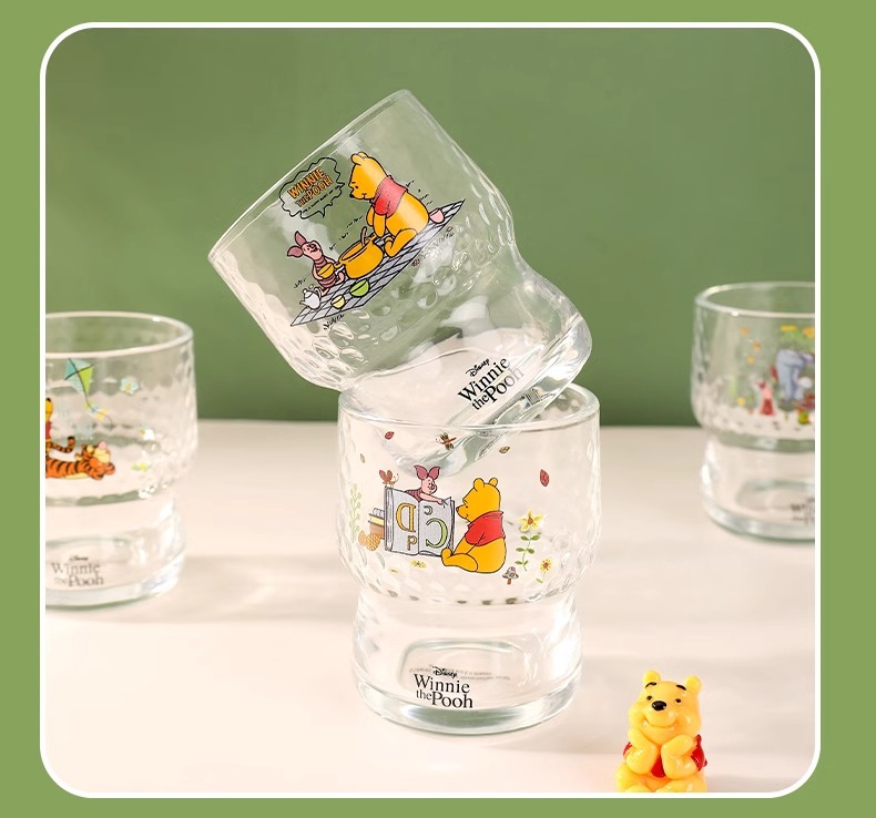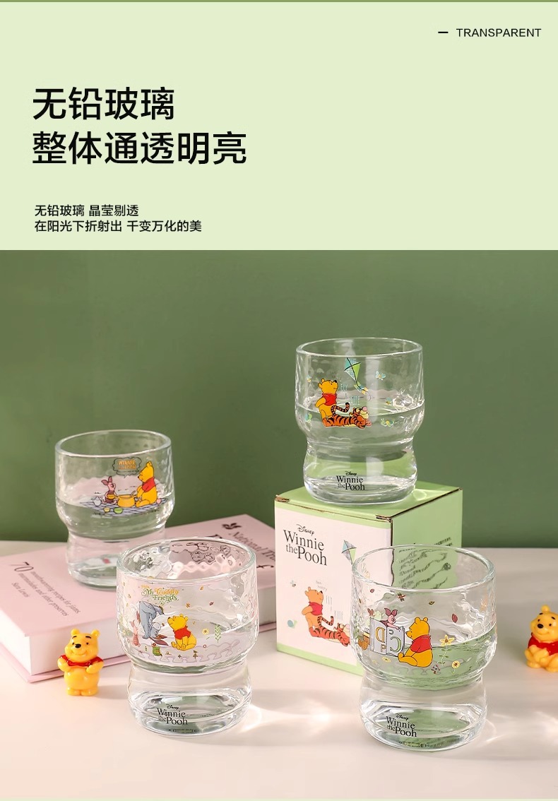 Winnie the Pookies Ins 높은 색상 가치 유리 투명한 물 컵 가정용 주스 차가운 음료 컵 맥주 컵 세트 배치