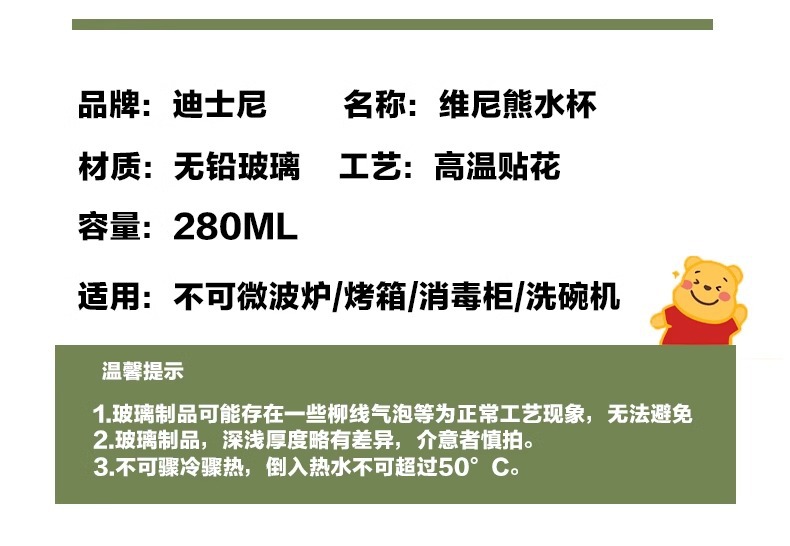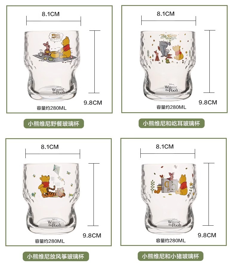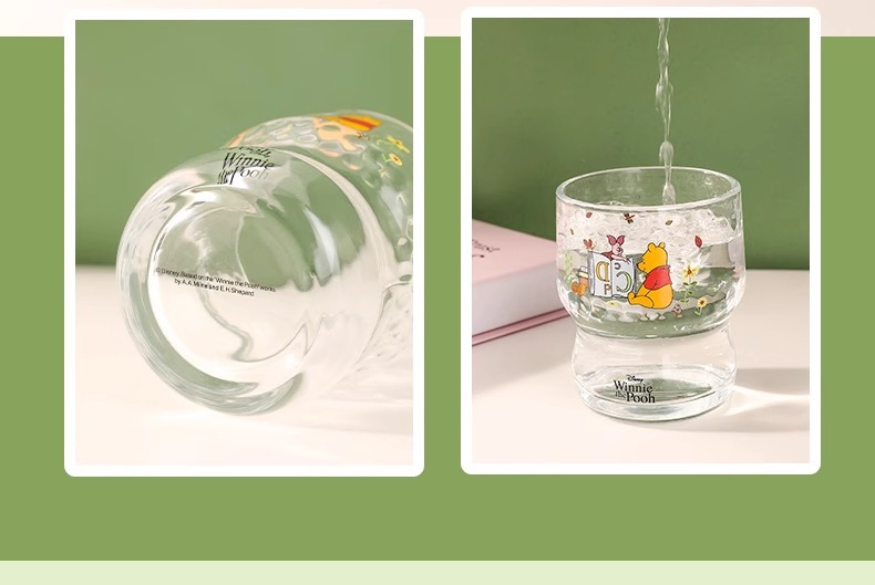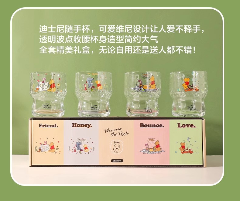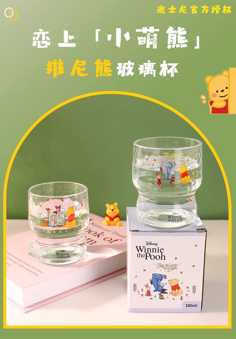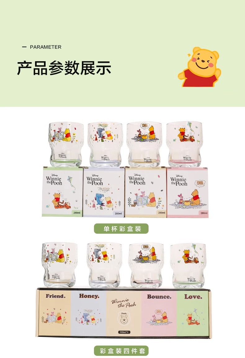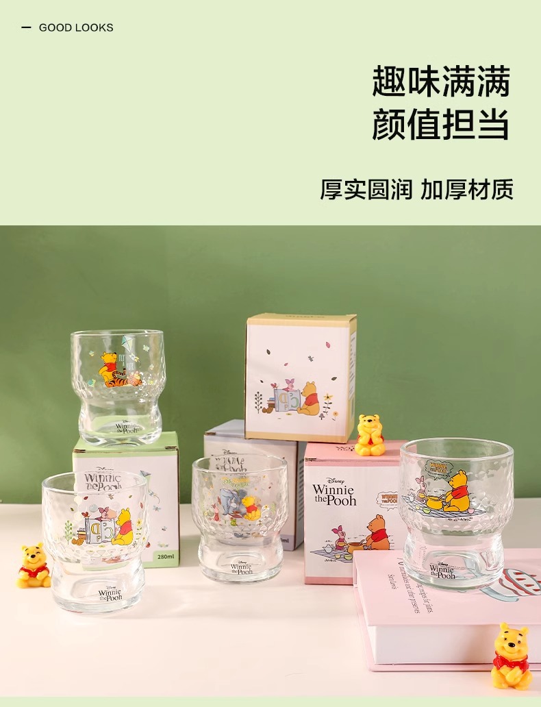Winnie the Pookies Ins 높은 색상 가치 유리 투명한 물 컵 가정용 주스 차가운 음료 컵 맥주 컵 세트 배치