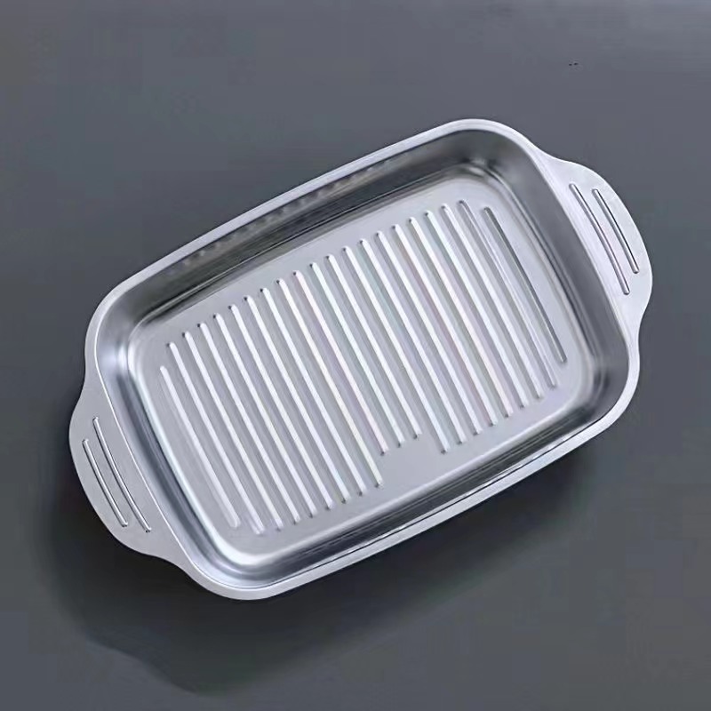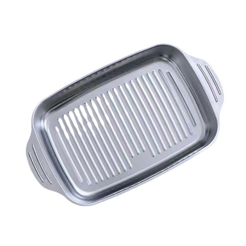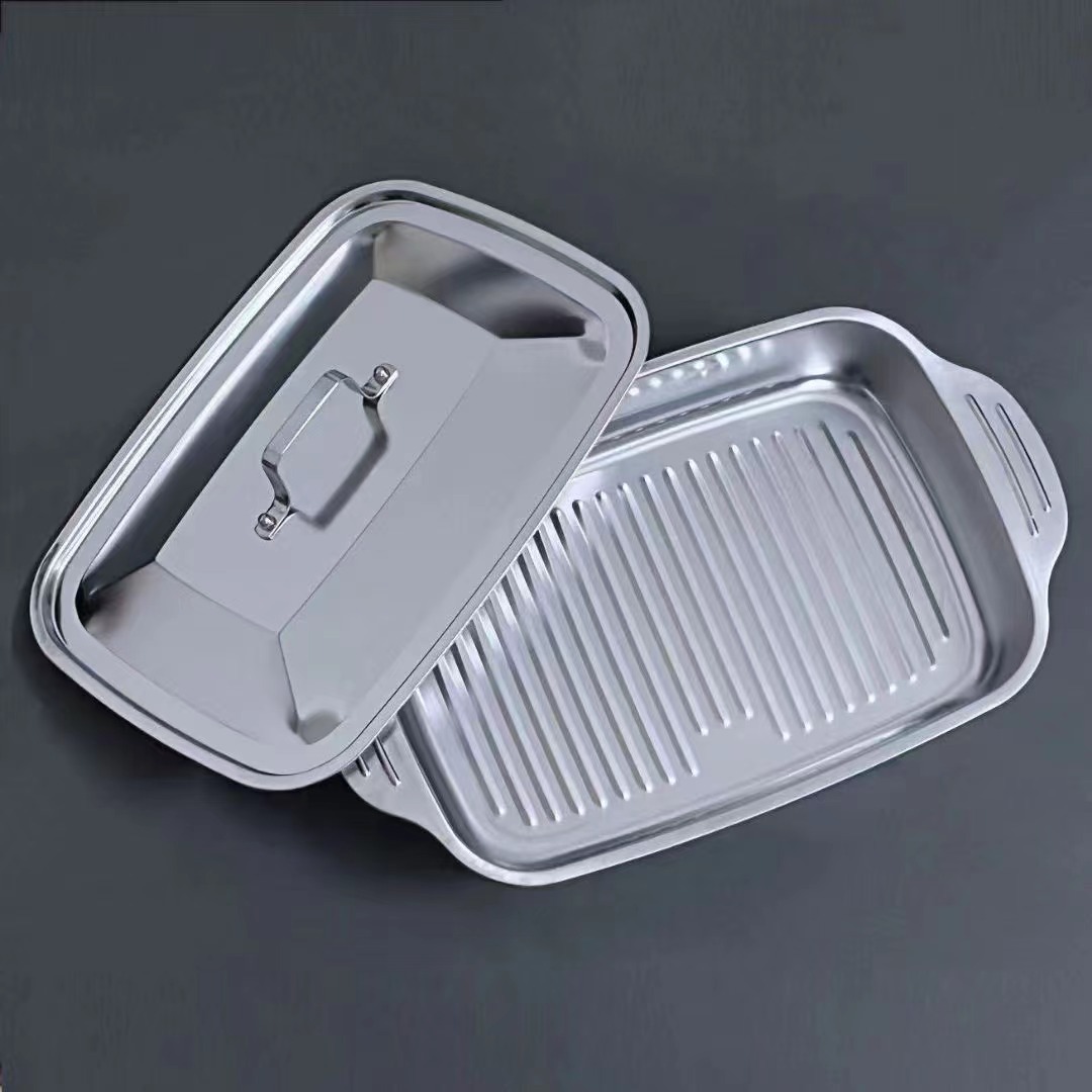 두꺼운 스테인레스 스틸 생선 그릴 접시 뚜껑 대용량 바베큐 요리 유도 쿠커를위한 보편적 인 베이킹 접시