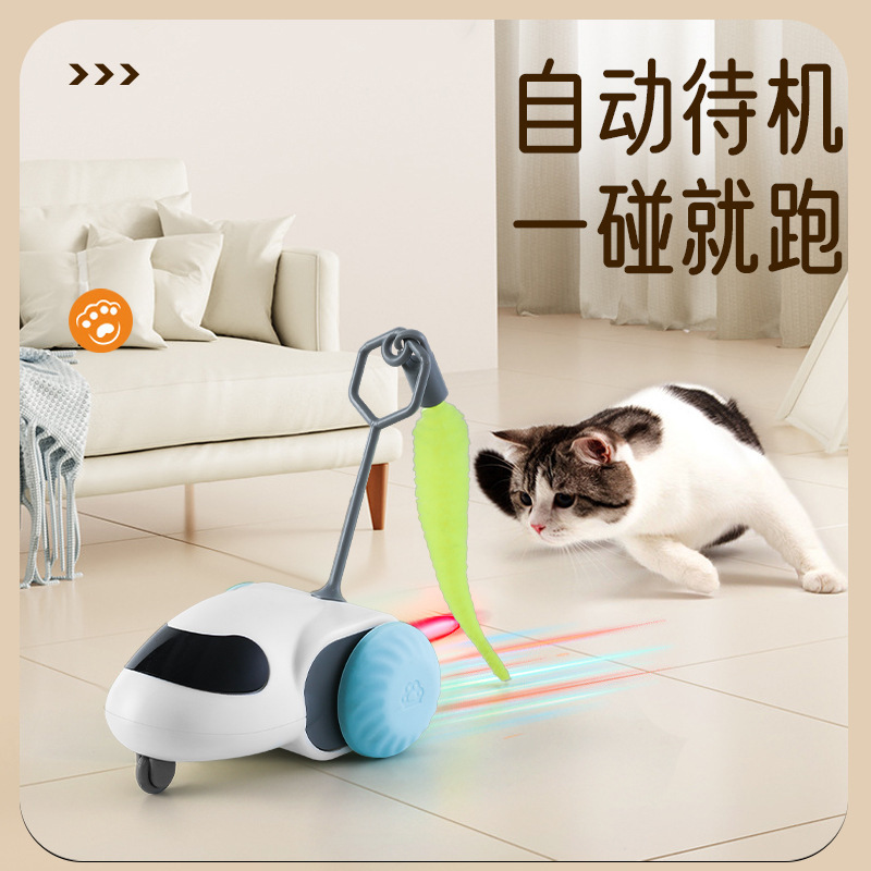 애완동물 러닝카 전동 고양이 장난감, 자가놀이, 지루함 해소, 깃털 고양이 장난감, 고양이 자가놀이 도구, 스트레스 해소
