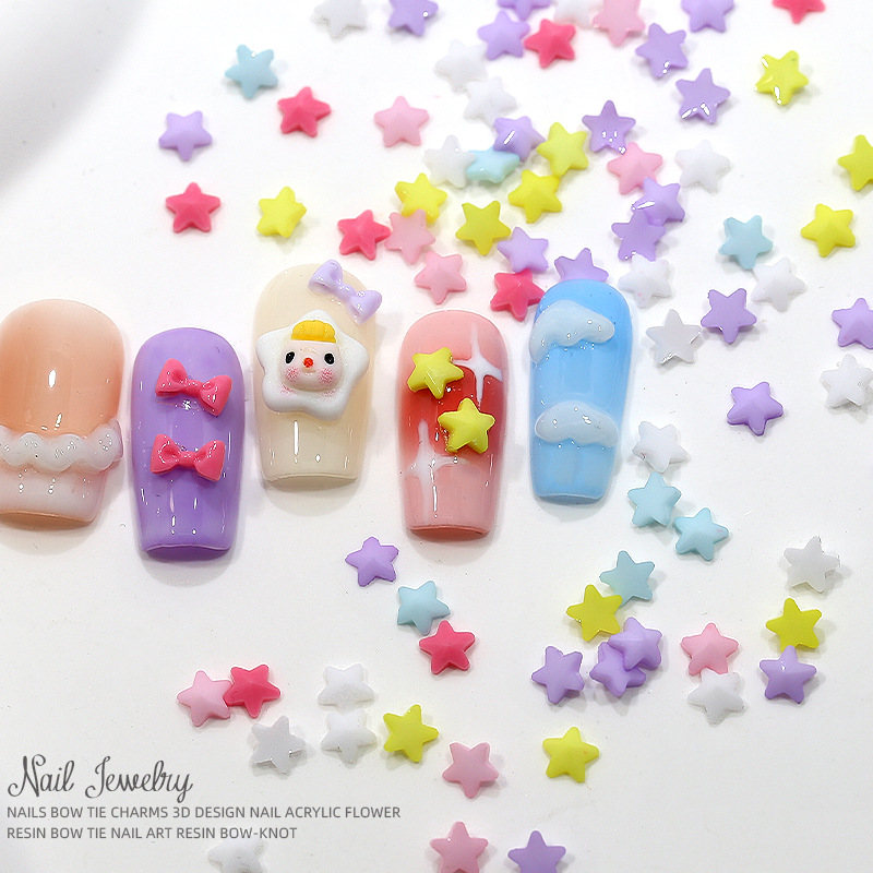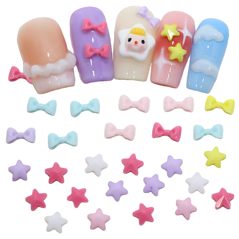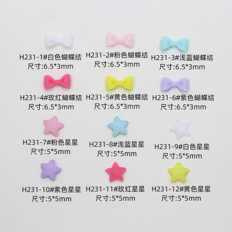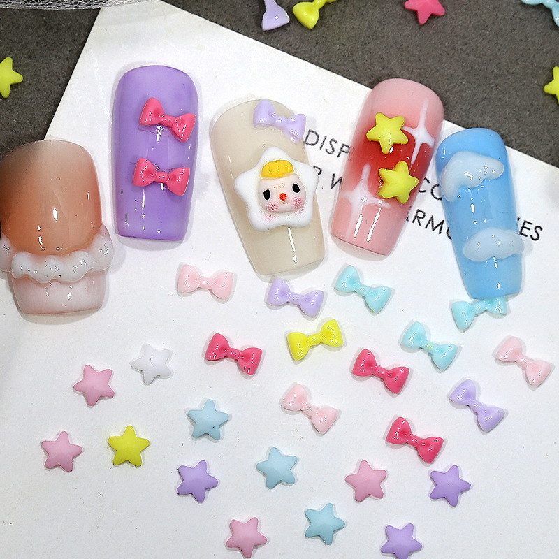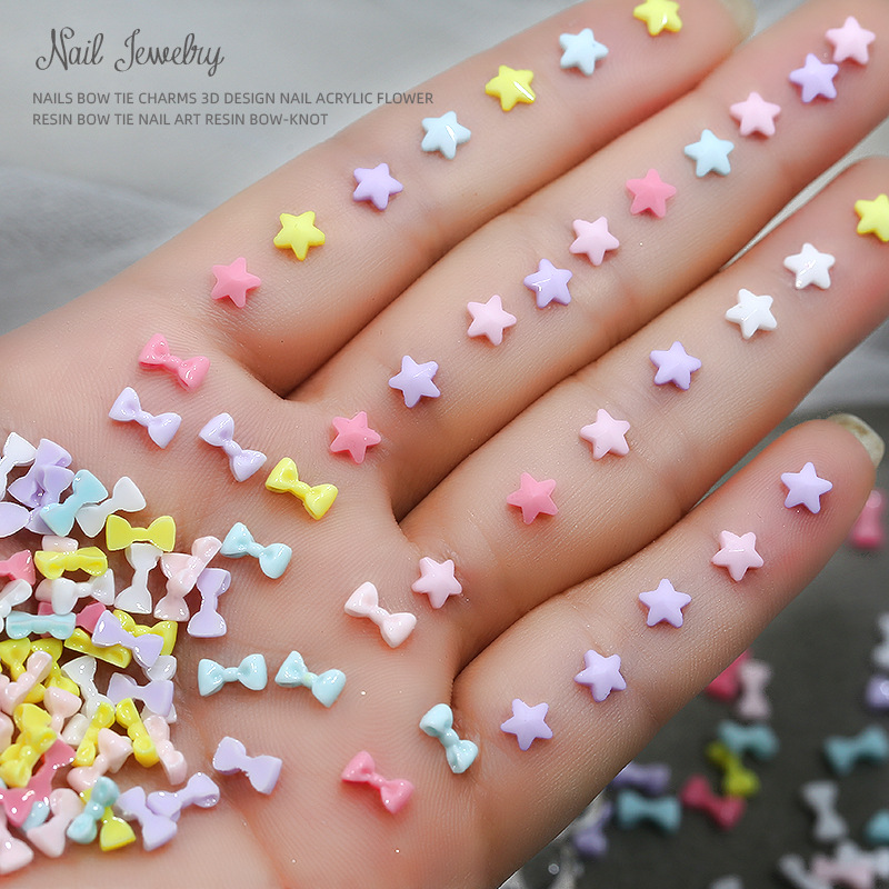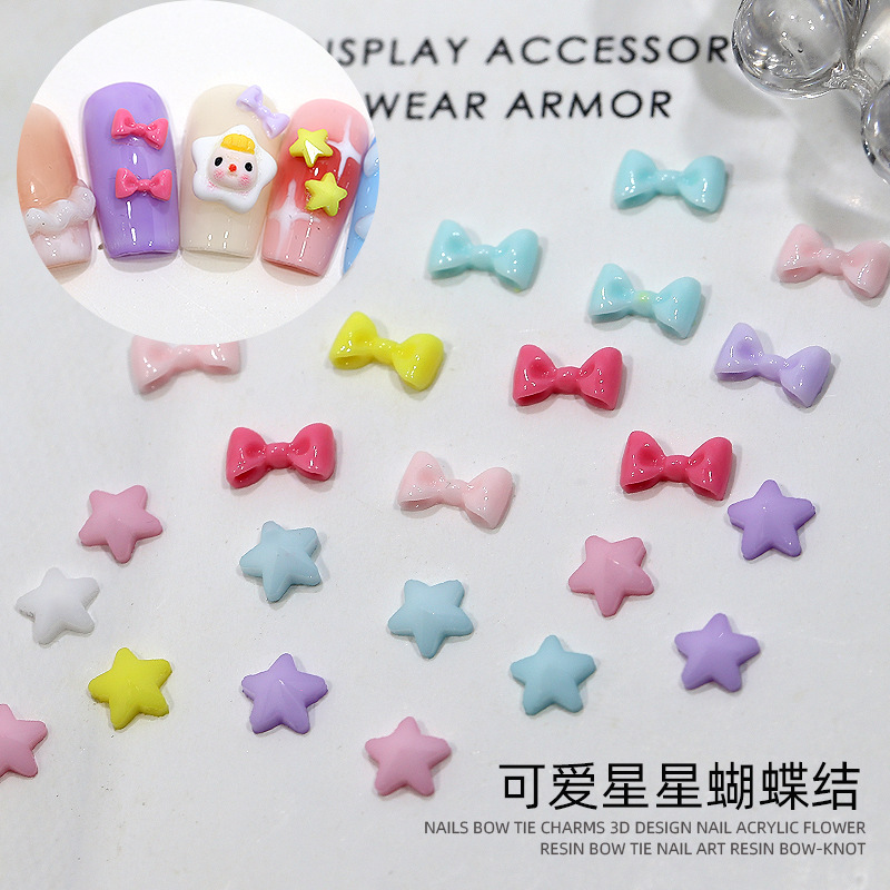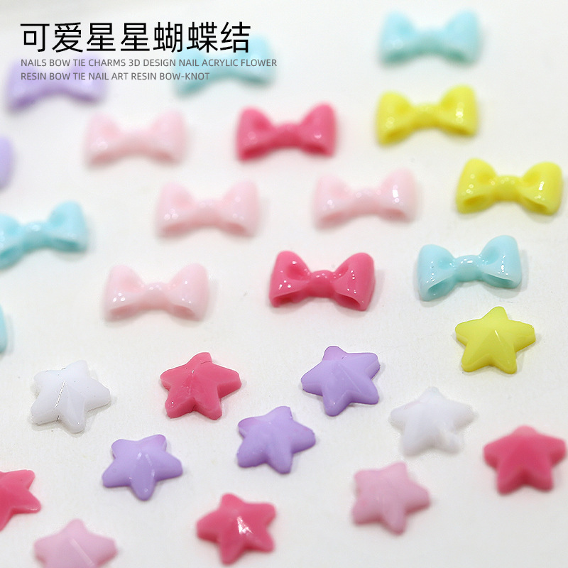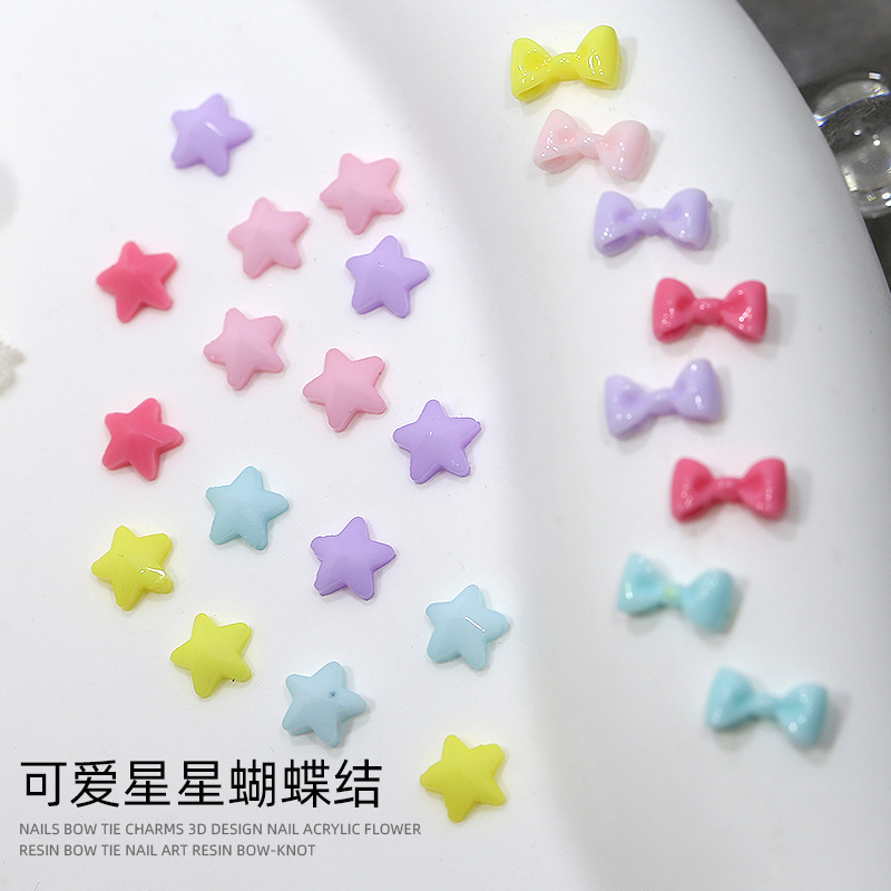 H231 새로운 수지 활 네일 보석 도매 귀여운 컬러 다섯개 별 입체 나비 넥타이 네일 장식