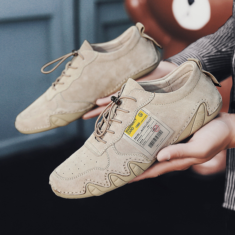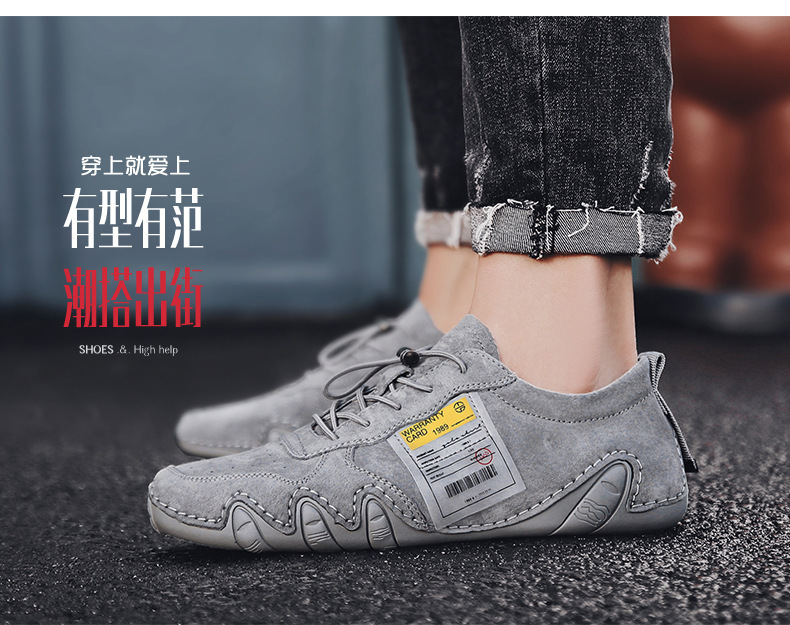 국경 2024 새로운 첫 번째 레이어 가죽 문어 운전 신발 패션 캐주얼 콩 신발 손으로 꿰맨 남성 트렌디 한 신발