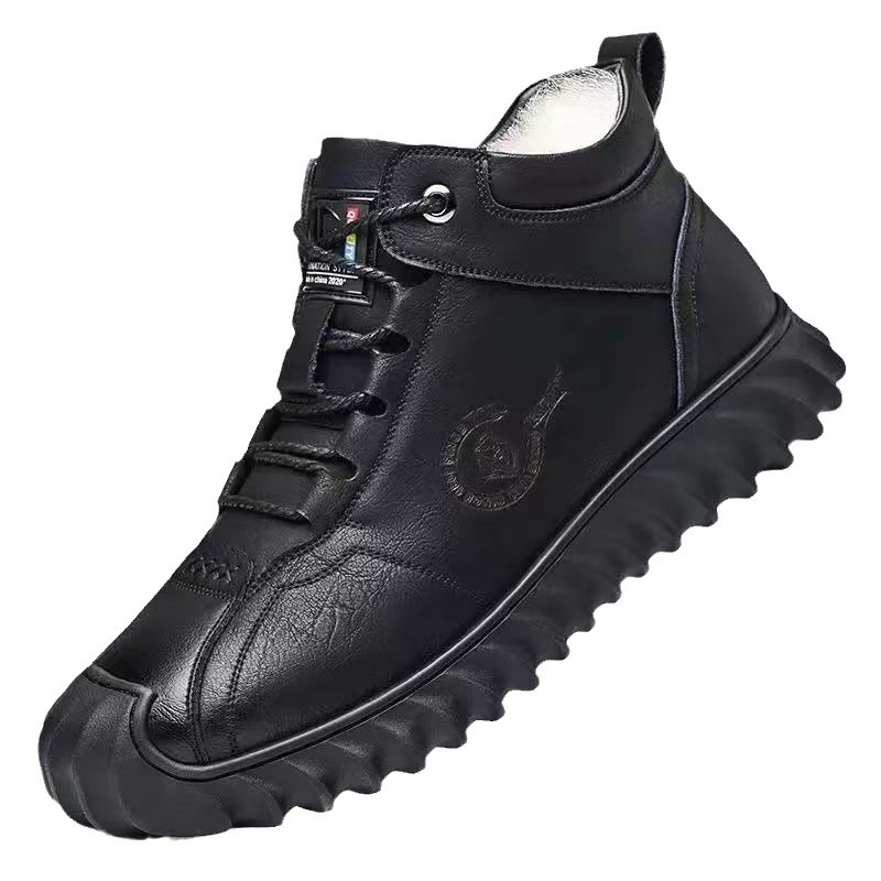 Cowhide 양모 겨울면 신발 남성용 따뜻한 기모 두꺼운 모피 원피스 남성용 코튼 가죽 신발 편안한 크로스 테두리