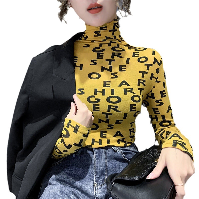 가을과 겨울 반 높이 칼라베이스 셔츠 여성용 내부 기모 세련된 세련된 편안한 긴팔 티셔츠