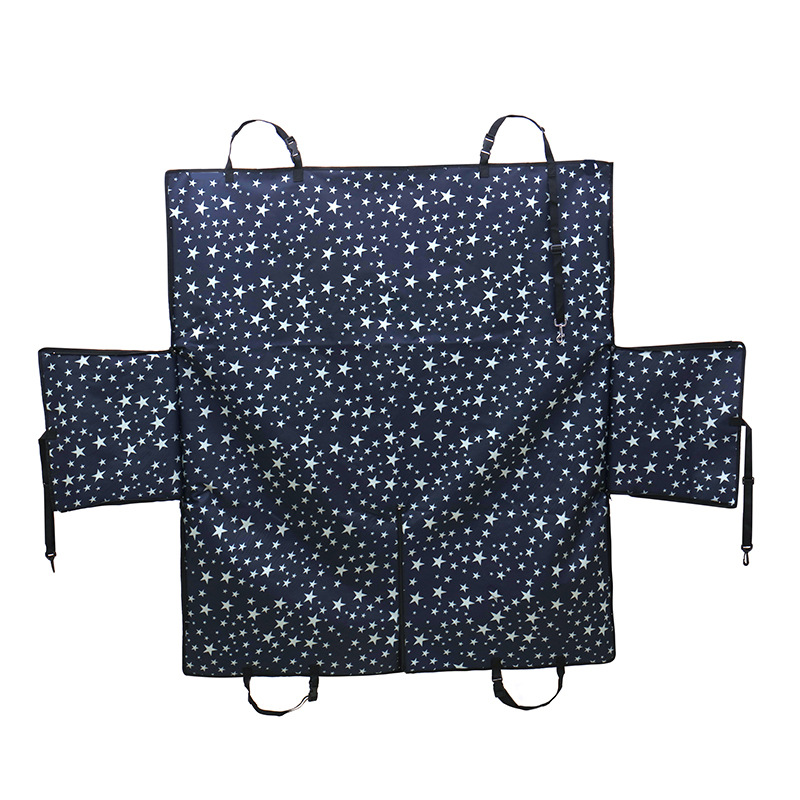 此款车载垫为升级开孔款,两侧都有拉锁设计,方便爱宠上下车;坐人可插安全带,可以放宝宝椅等;可调节插口轻松调节固定带子长短,双层加厚印花牛津布,更靓丽,耐刨,耐脏,易清洗!!