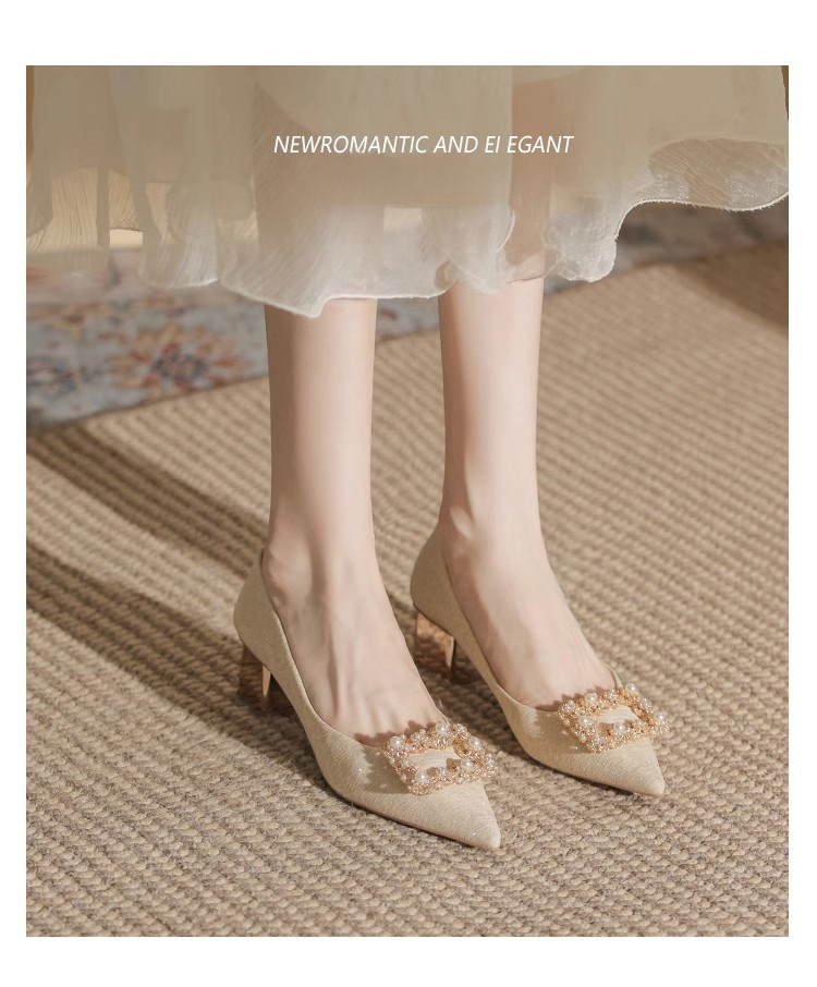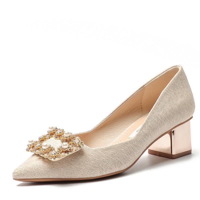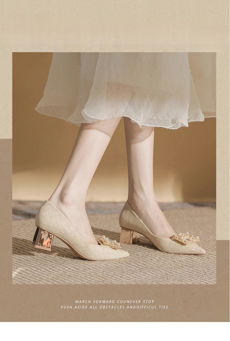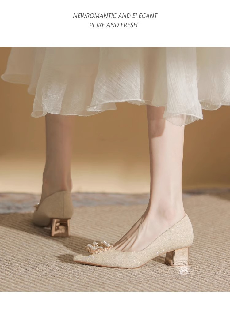 메인 웨딩 원피스 웨딩 신발 2024 새로운 신부 신발 황금 하이힐 피곤하지 않은 발 소녀 청키 힐 신부 들러리 크리스탈 신발