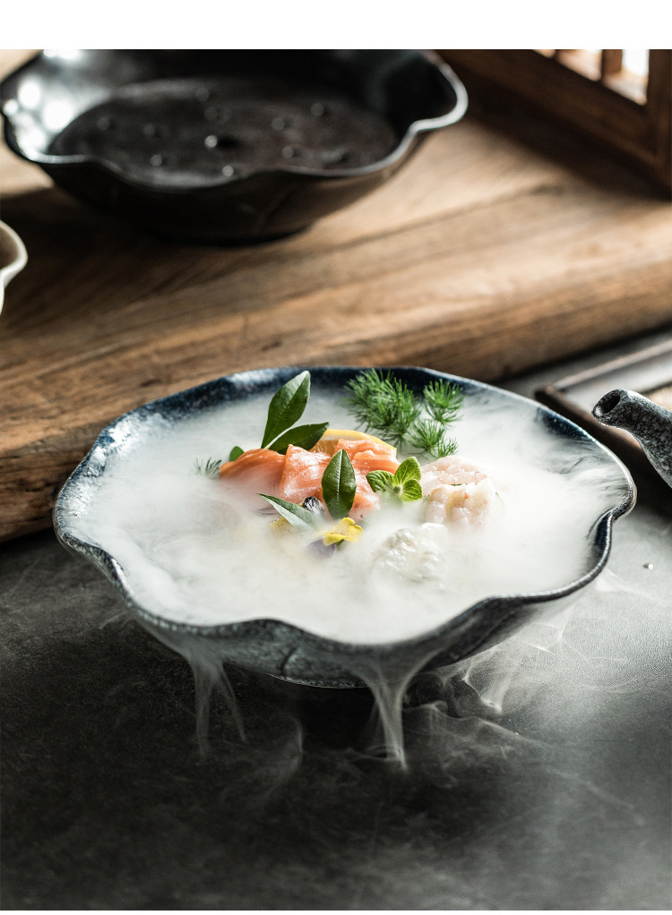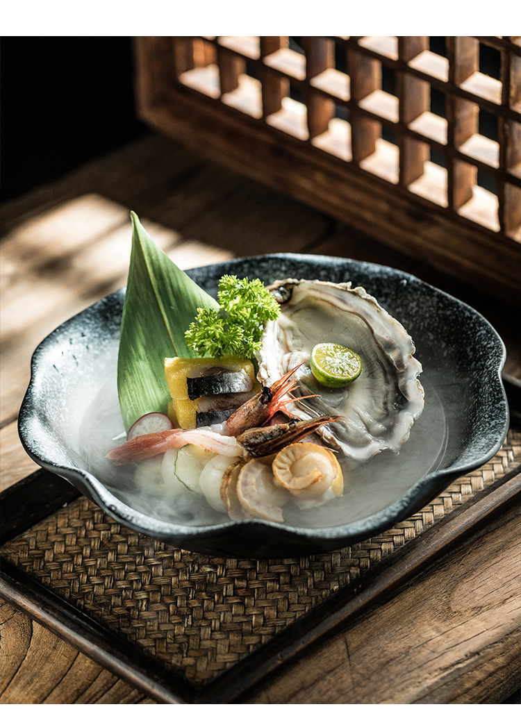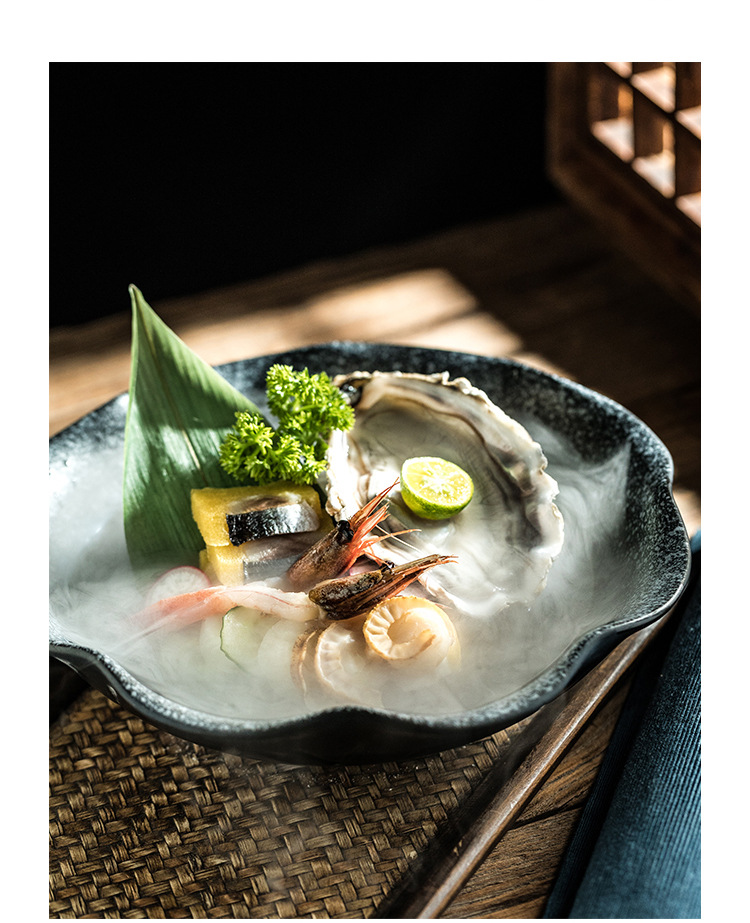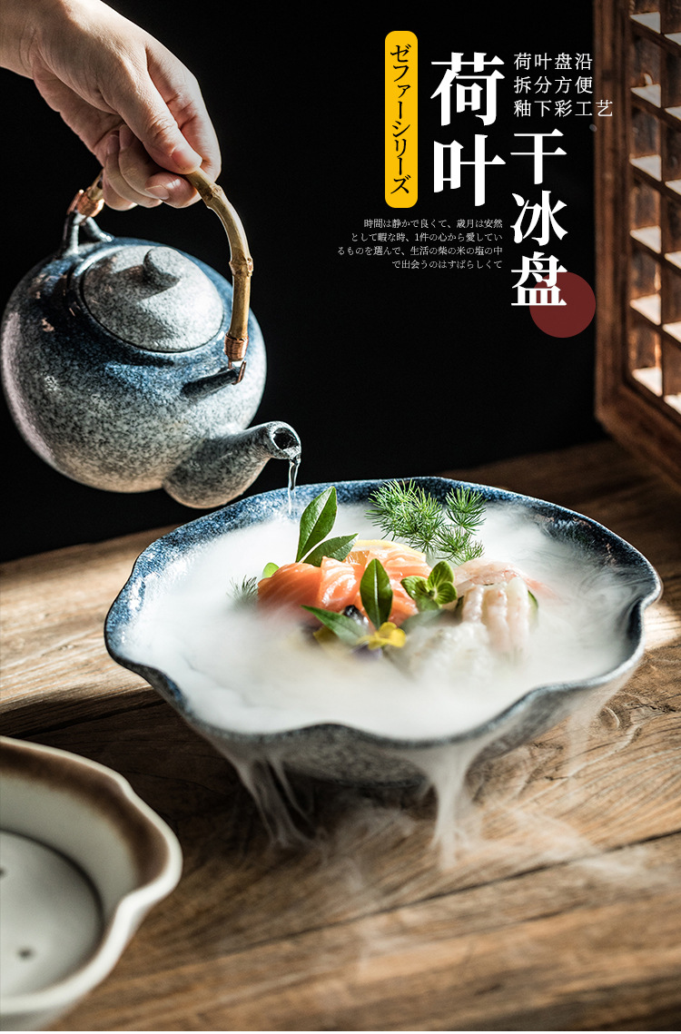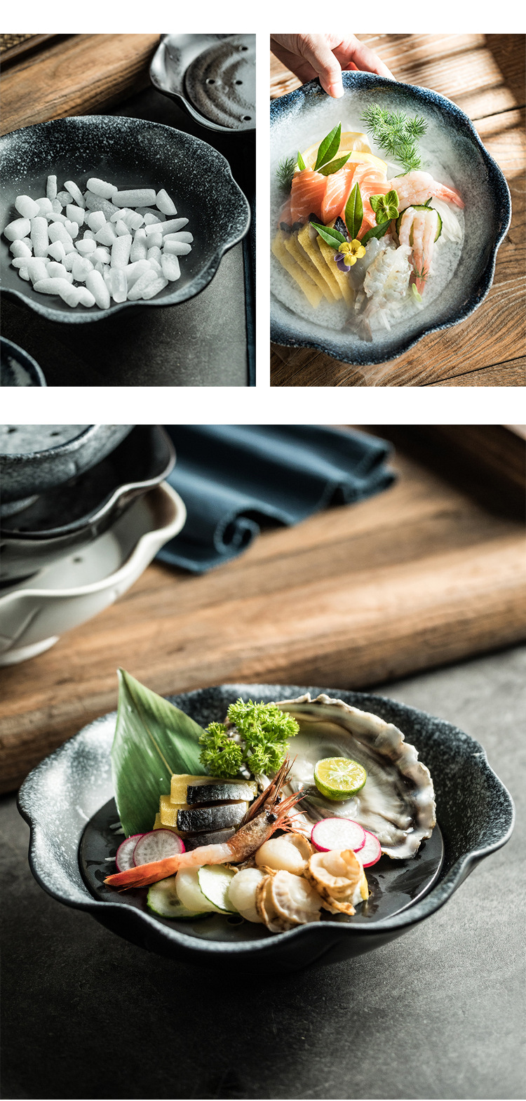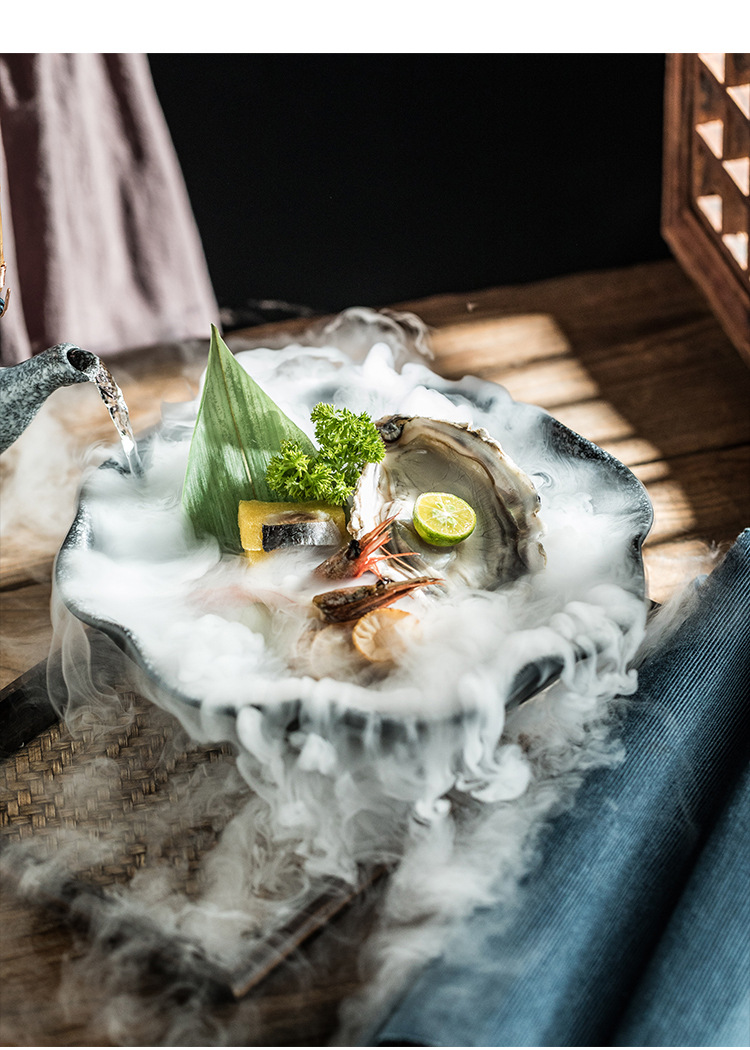 창조적 인 일본식 세라믹 드라이 아이스 플레이트 식기 접시 요리 사시미 플레이트 연어 코끼리 클램 해산물 접시