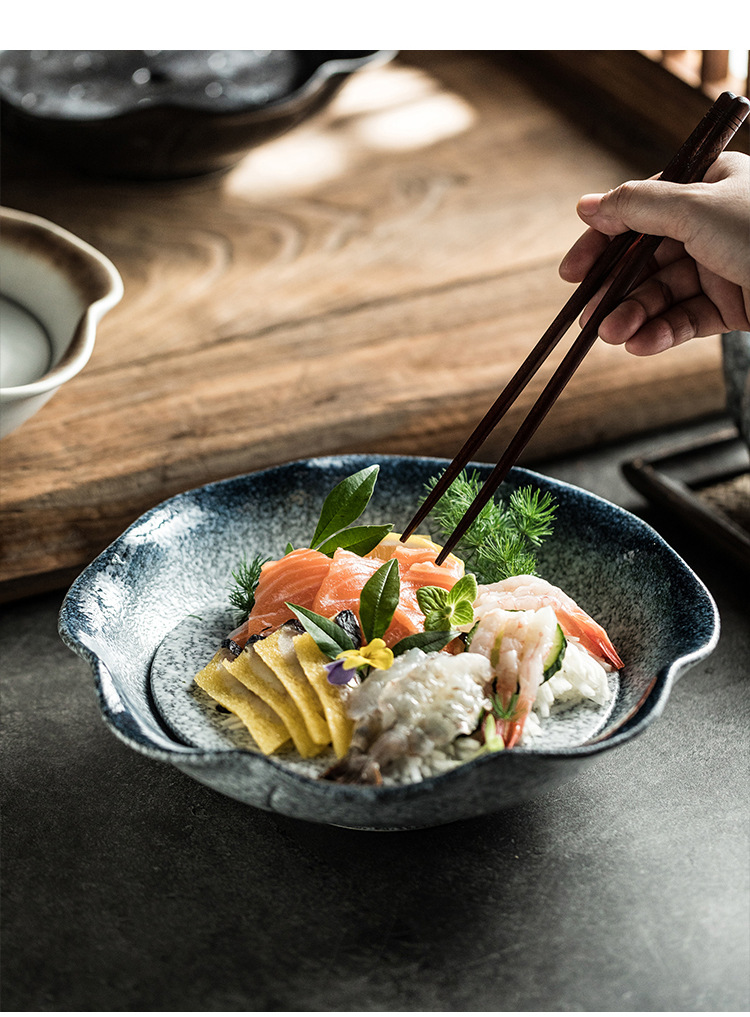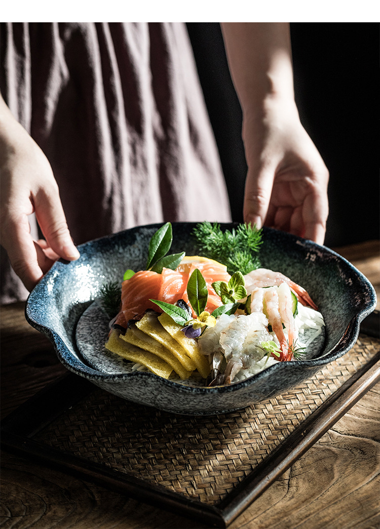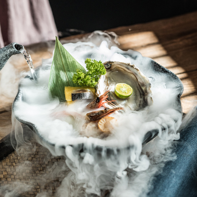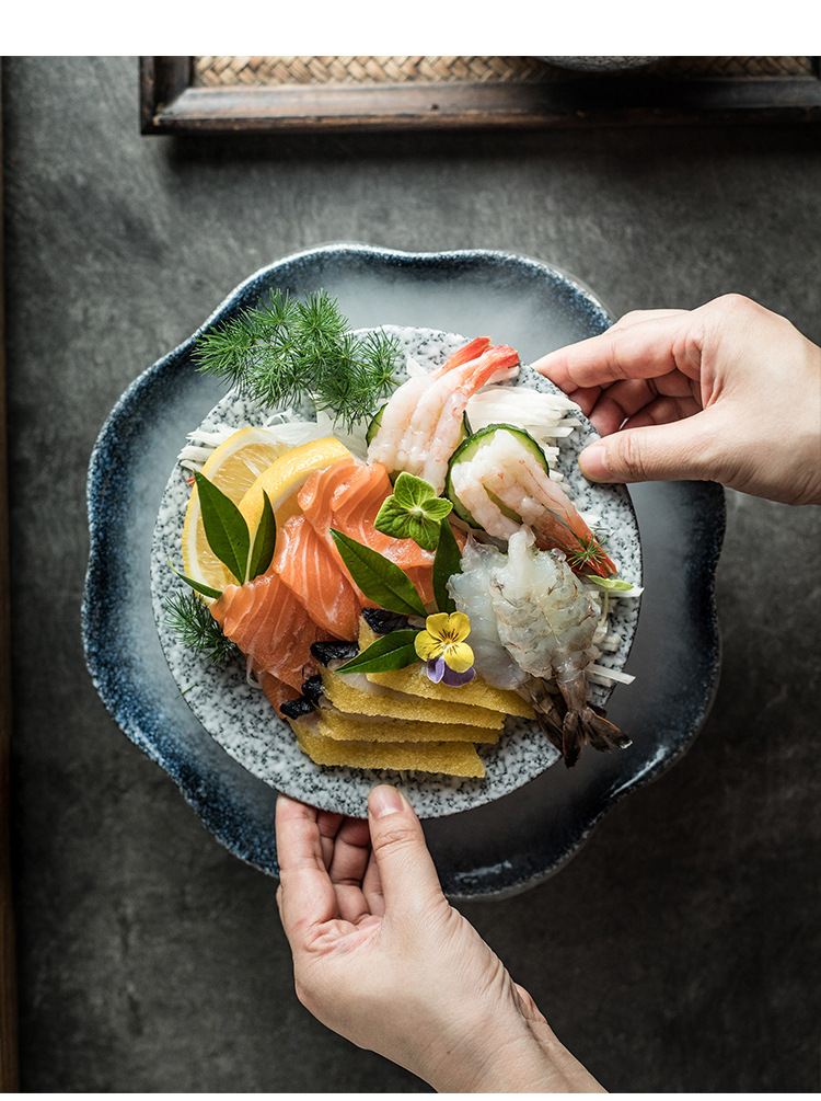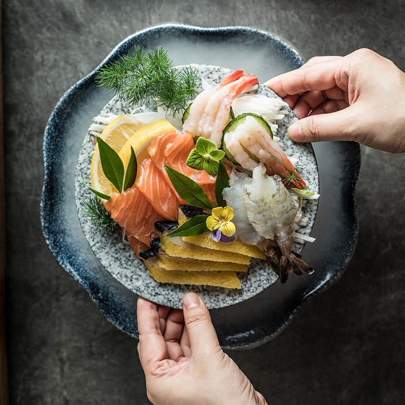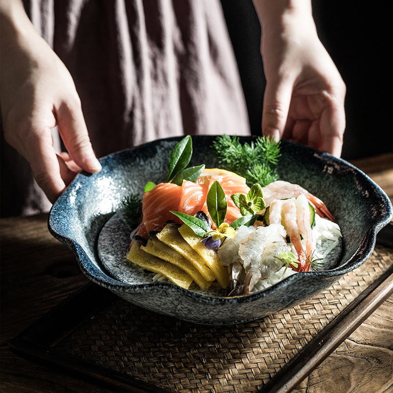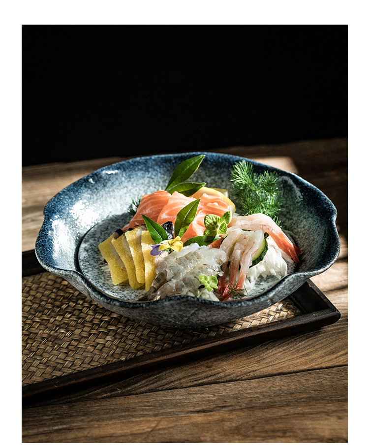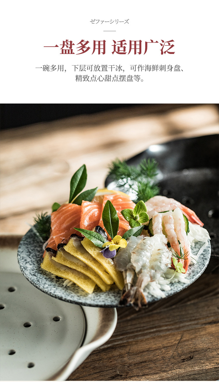 창조적 인 일본식 세라믹 드라이 아이스 플레이트 식기 접시 요리 사시미 플레이트 연어 코끼리 클램 해산물 접시