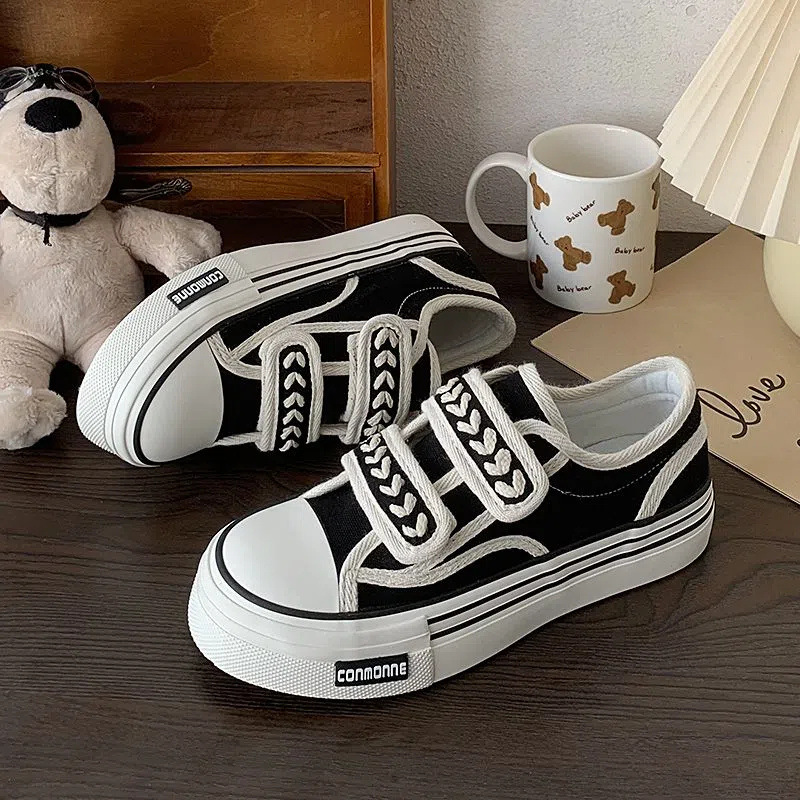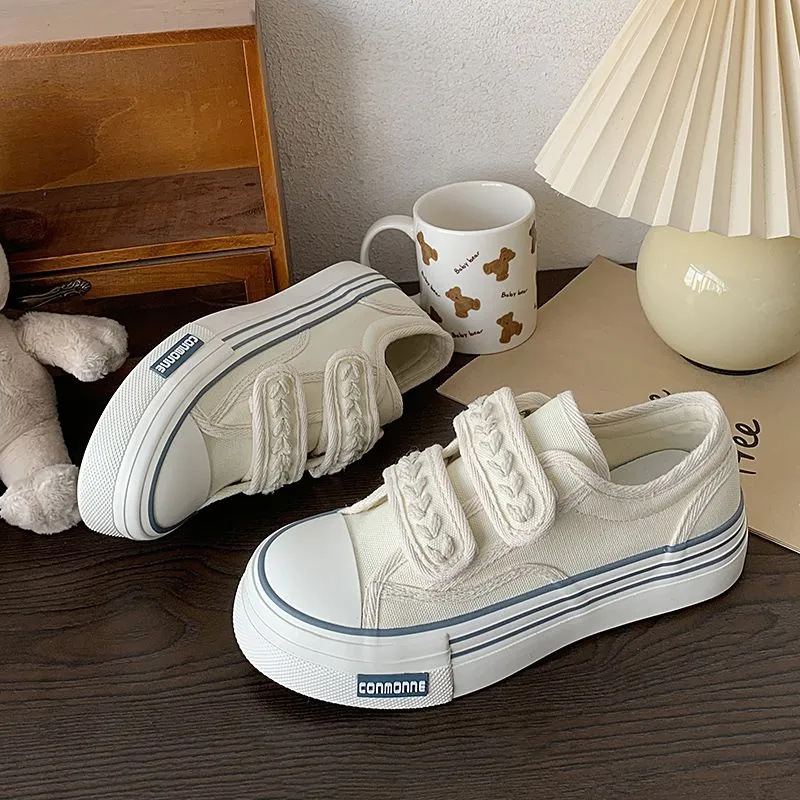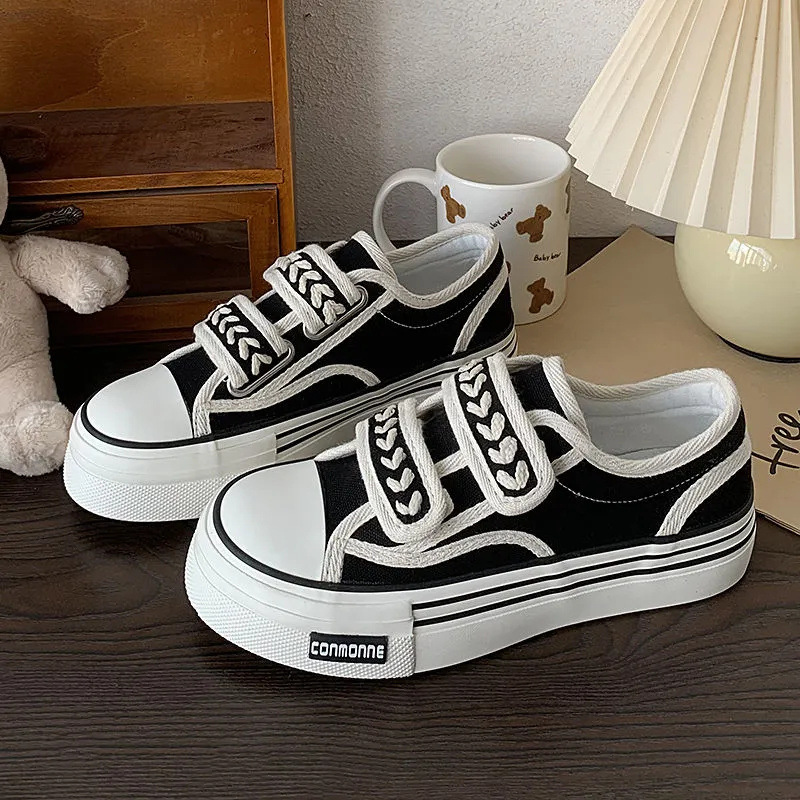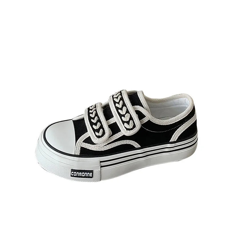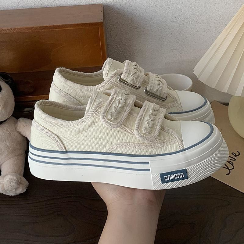 2024 봄 벨크로 캔버스 신발 여성 두꺼운 밑창 통기성 경량 플랫폼 신발 슬리밍 하이드 캐주얼 신발 여성용 신발