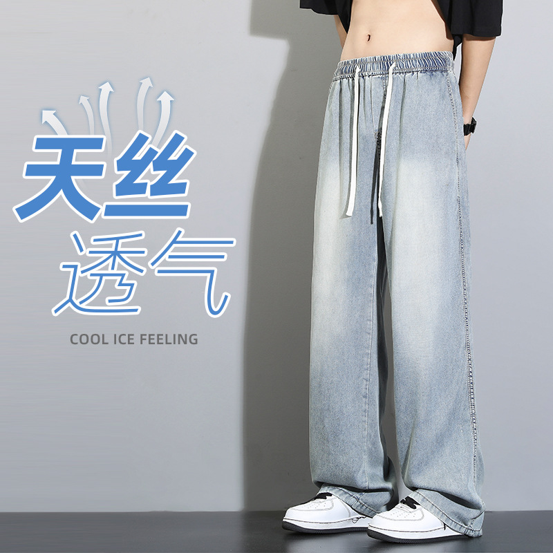 미국 스타일 신상 텐셀 드레이프 진 하이 스트리트 브랜드 2025 레트로 루즈핏 스트레이트 아이스 실크 와이드 레그 캐주얼 팬츠