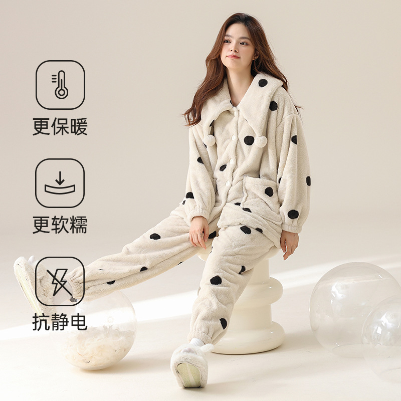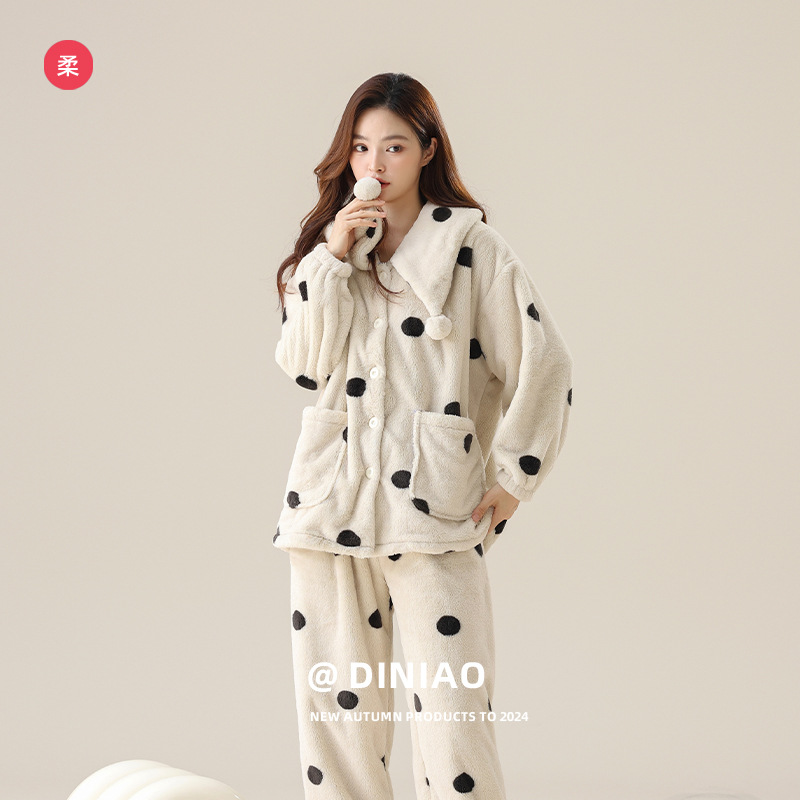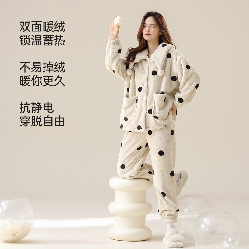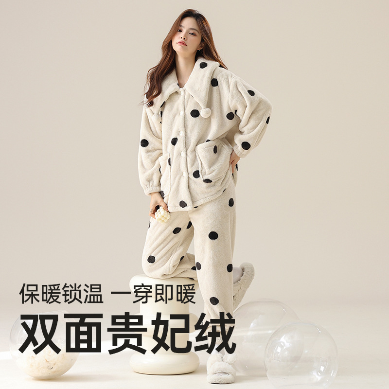 [양면 레이디 벨벳] 겨울 여성 잠옷 여성 두꺼워 따뜻한 산호 벨벳 여론 조사 여성 홈 의류 세트