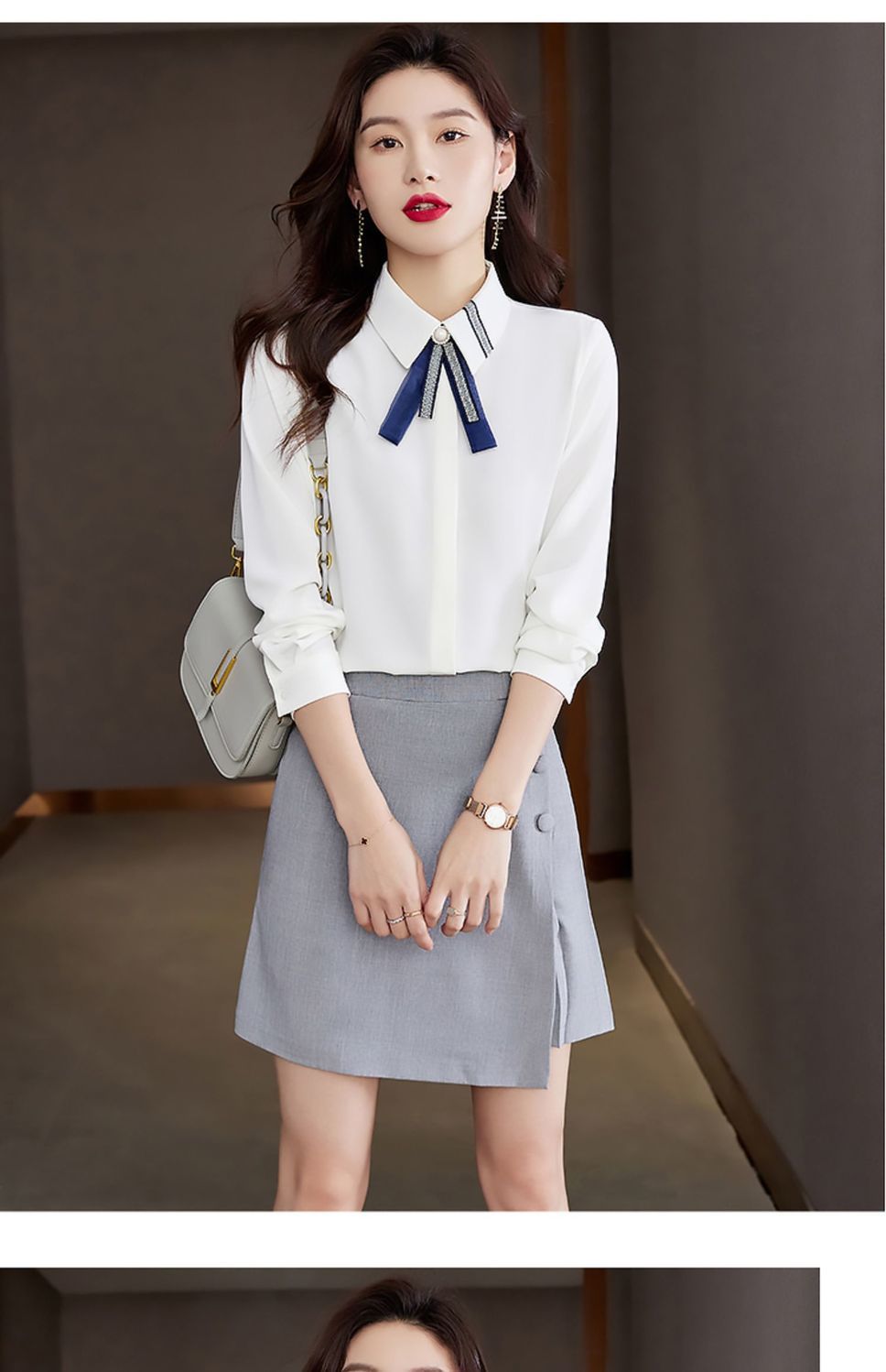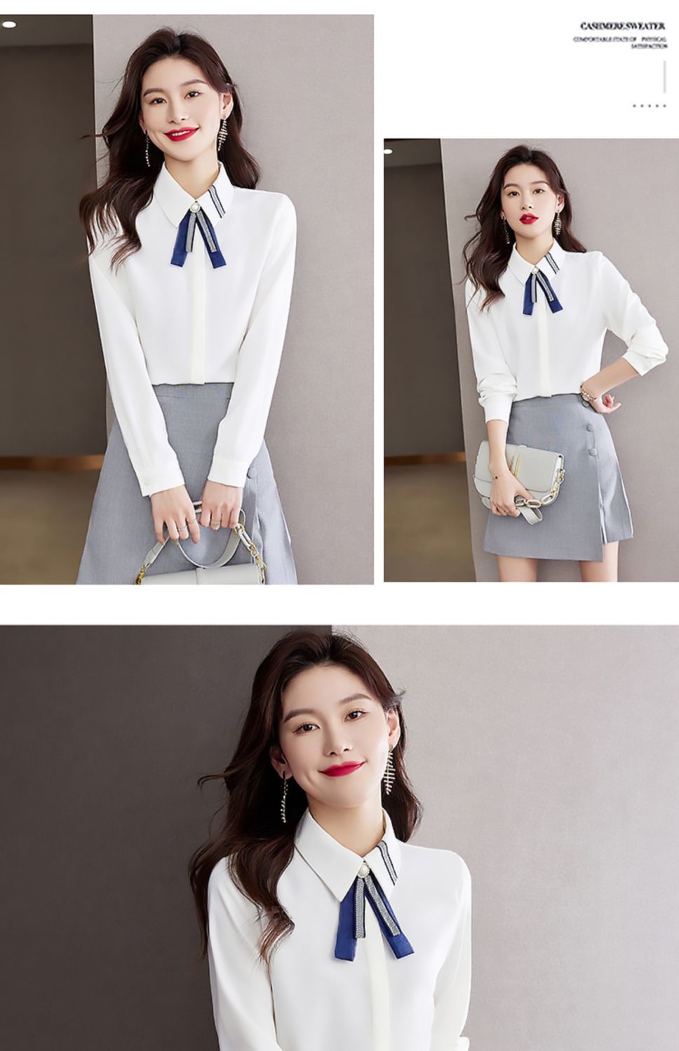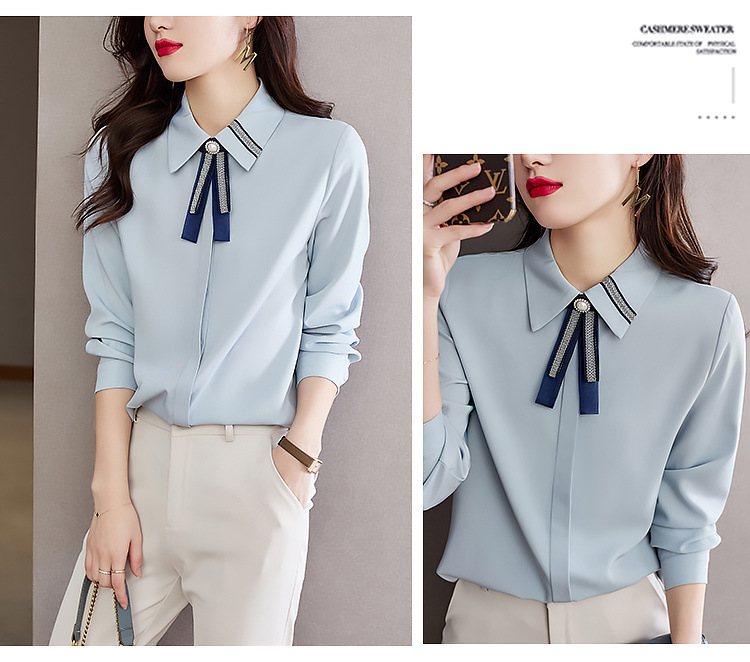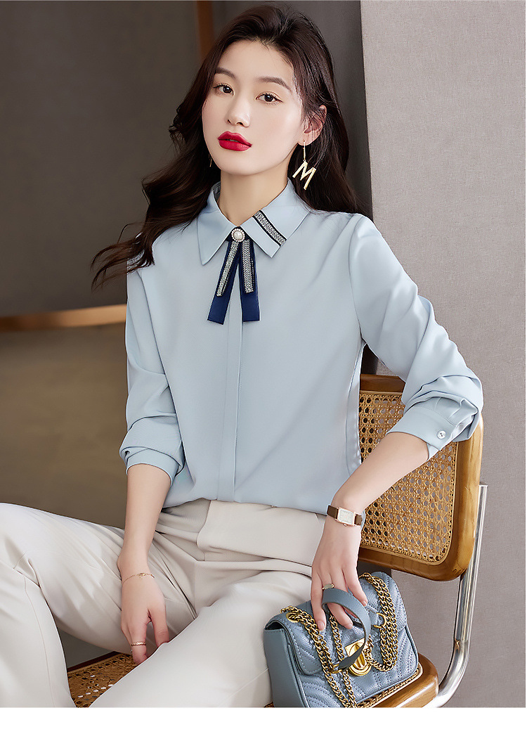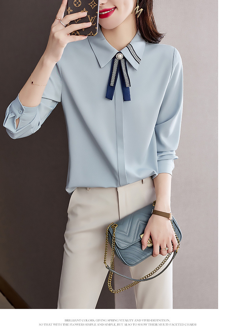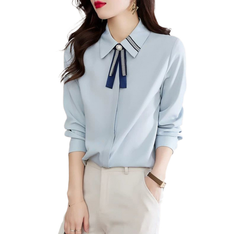 화이트 셔츠 여성의 가을 2024 새로운 스타일 기질 여성 전문 셔츠 긴 소매 쉬폰 탑 작은 셔츠