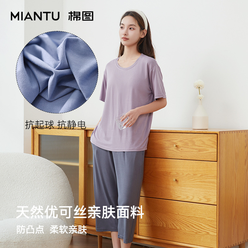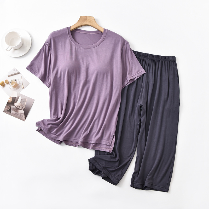 새로운 모달 파자마 가슴 패드 여성용 반팔 카프리 바지 여름 얇은 세트 복장