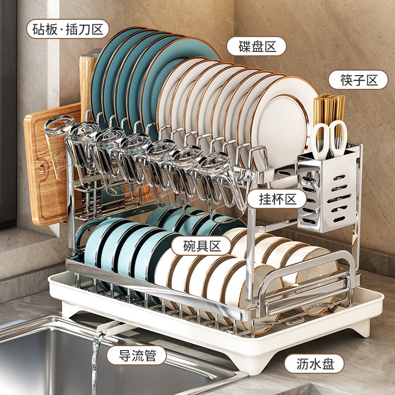 [실버] 2단 배수랙 (싱글랙+컵홀더+젓가락홀더+칼홀더+도마홀더)