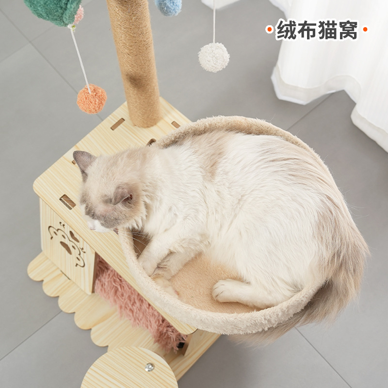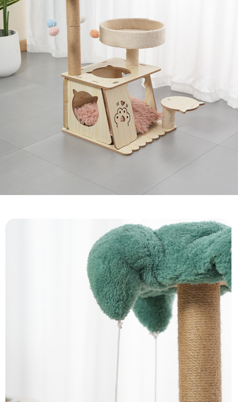 02-더블 고양이 둥지 다기능 고양이 등반 프레임 + 플러시 쿠션