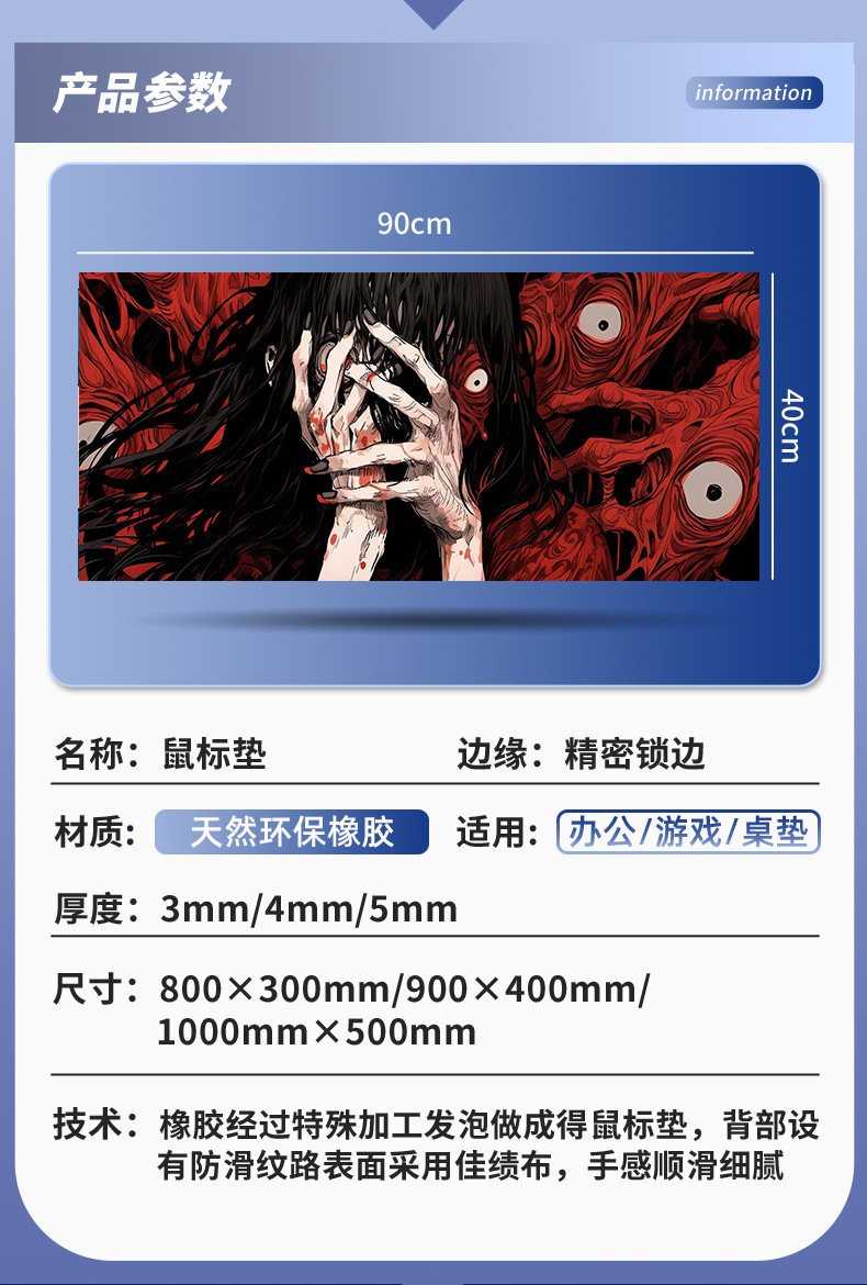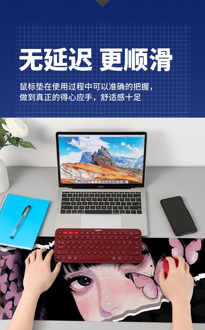 크로스보더 고급 마우스패드, 초대형 푸장 스타일, 맞춤형, 오염 방지 키보드 패드, 컴퓨터용 미끄럼 방지, 제조업체 도매, 만화 테이블 패드