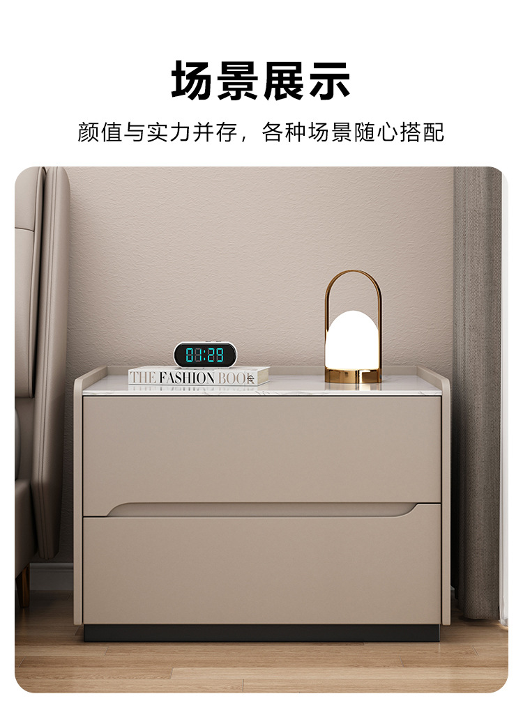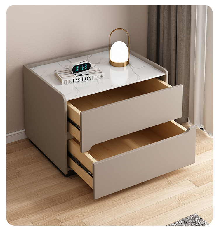 전체 단단한 나무 침대 옆 테이블 빛 고급 고급 고급 고급 침실 현대 간단한 바위 보드 설치 무료 작은 가죽 침대 옆 캐비닛