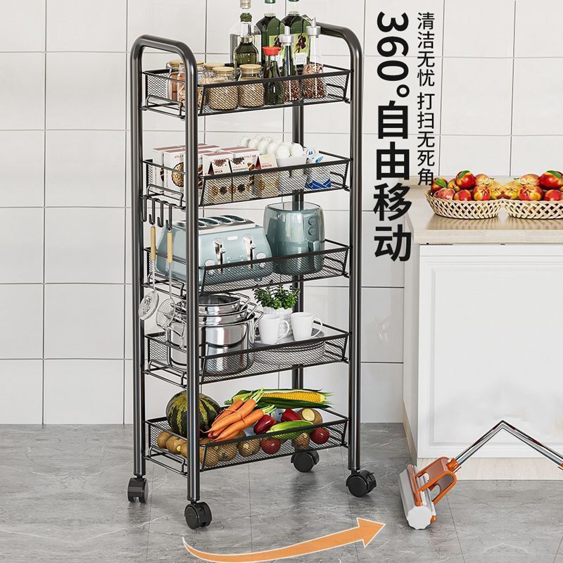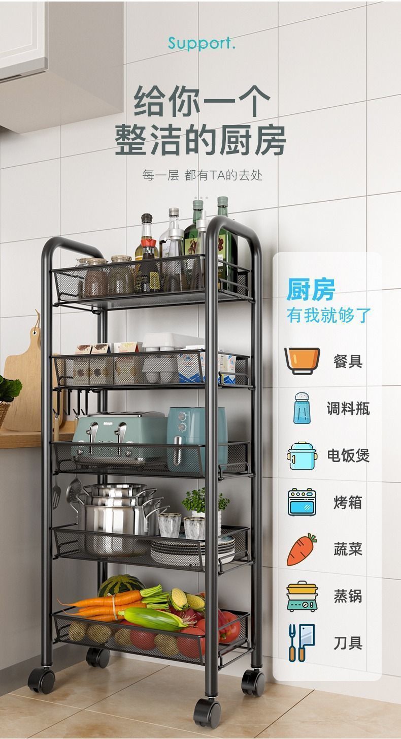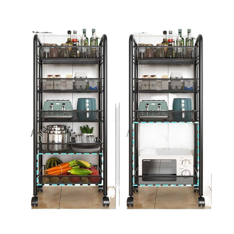 주방 보관 선반 바닥 다층 가정용 전자 레인지 선반 야채 저장 랙 오븐 랙 오븐 저장 랙 휠